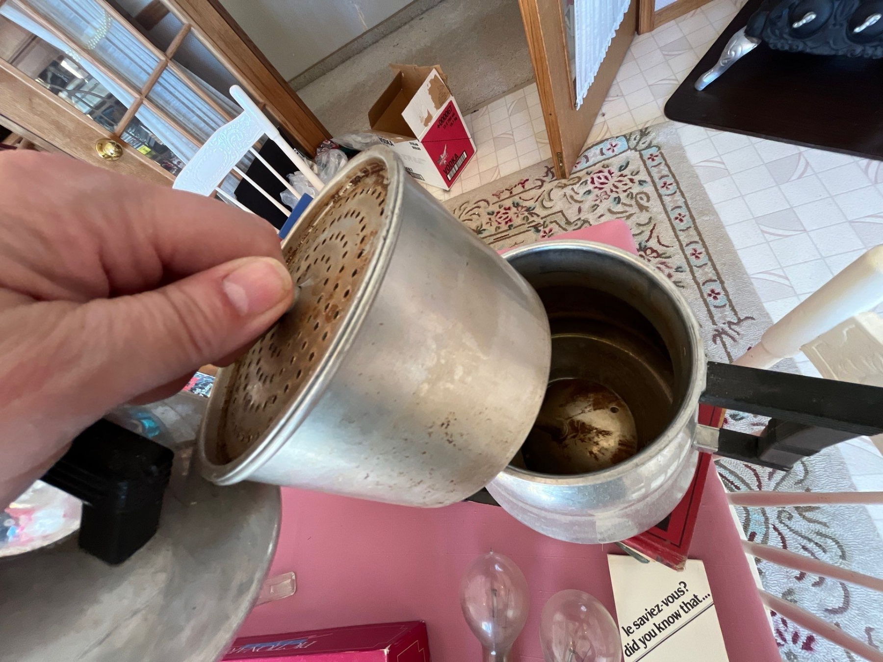 -antique Mother Goose and tin truck with a vintage Thermax, water, jug, coffee kettle, antique bottl