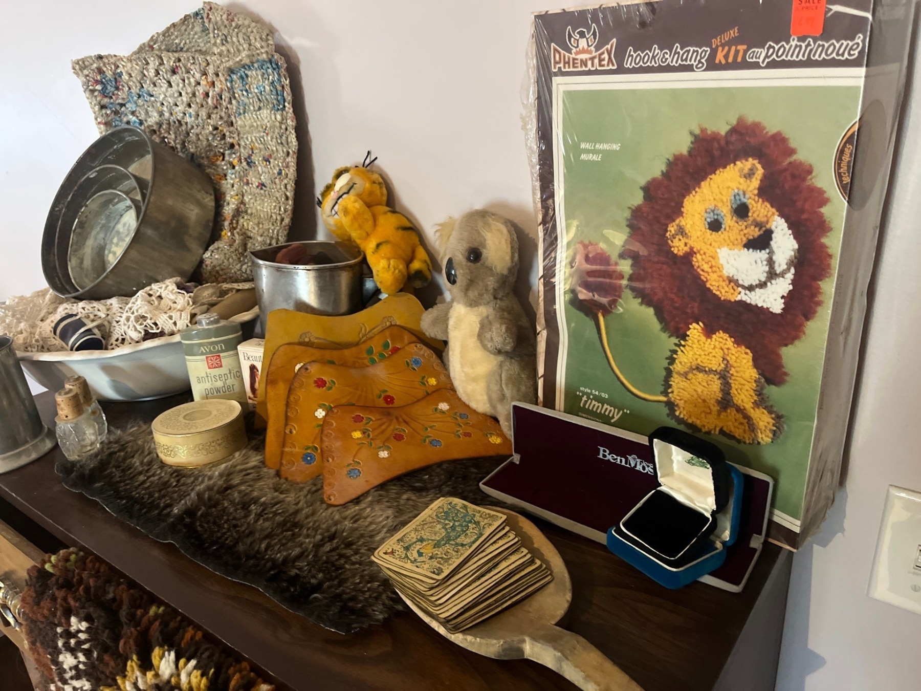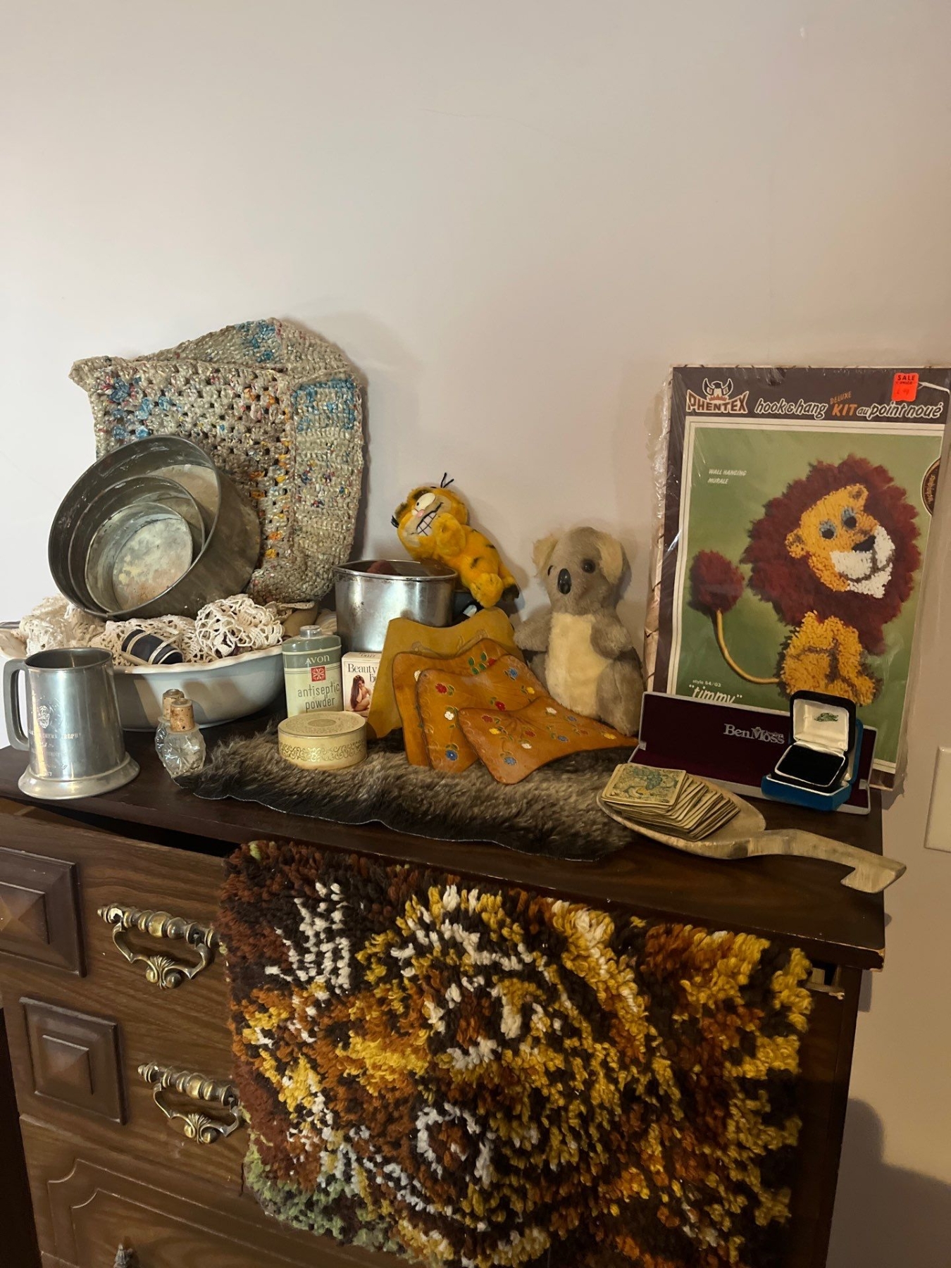 -collection of handmade carpet bag vintage Garfield another vintage cans