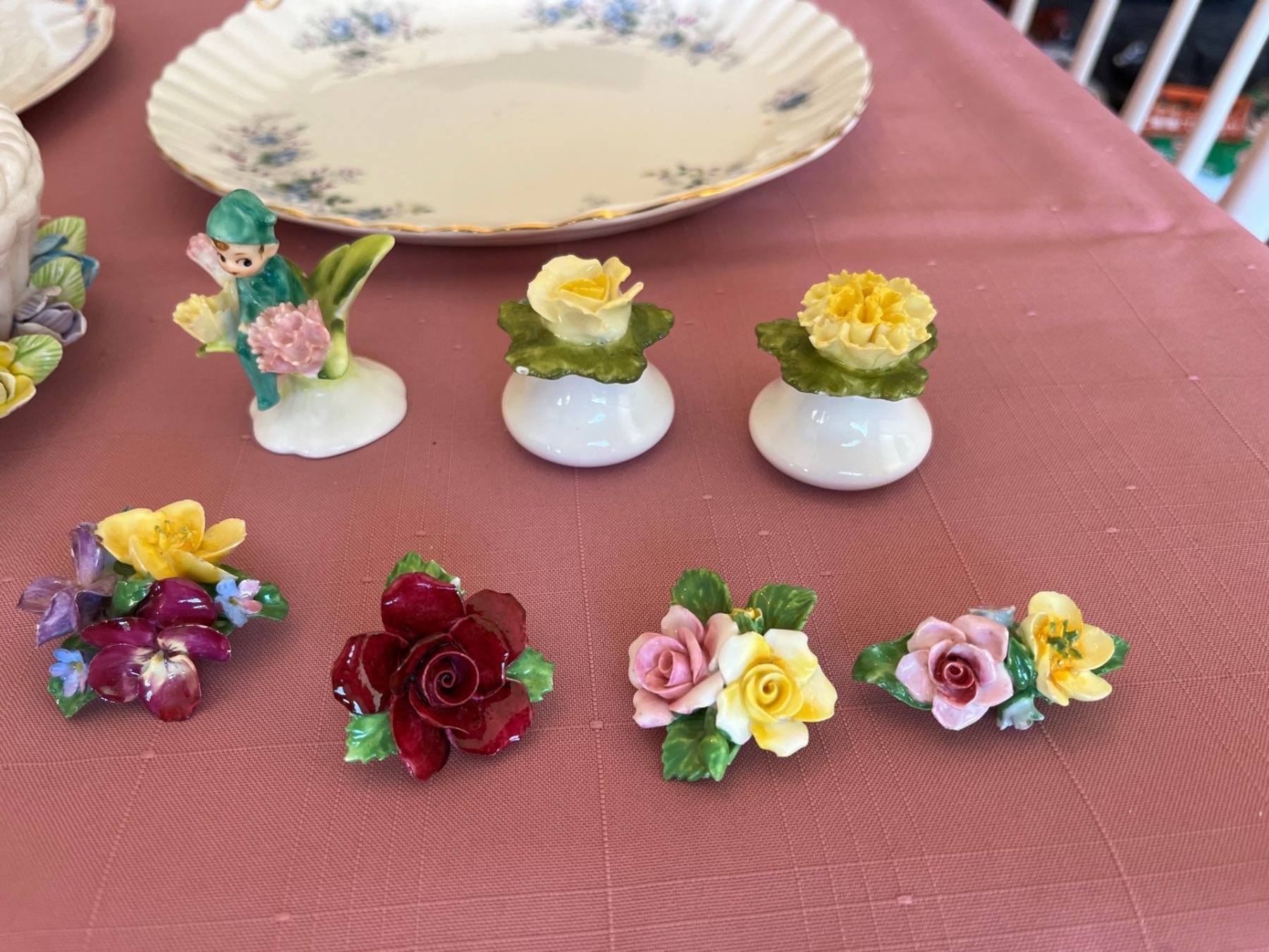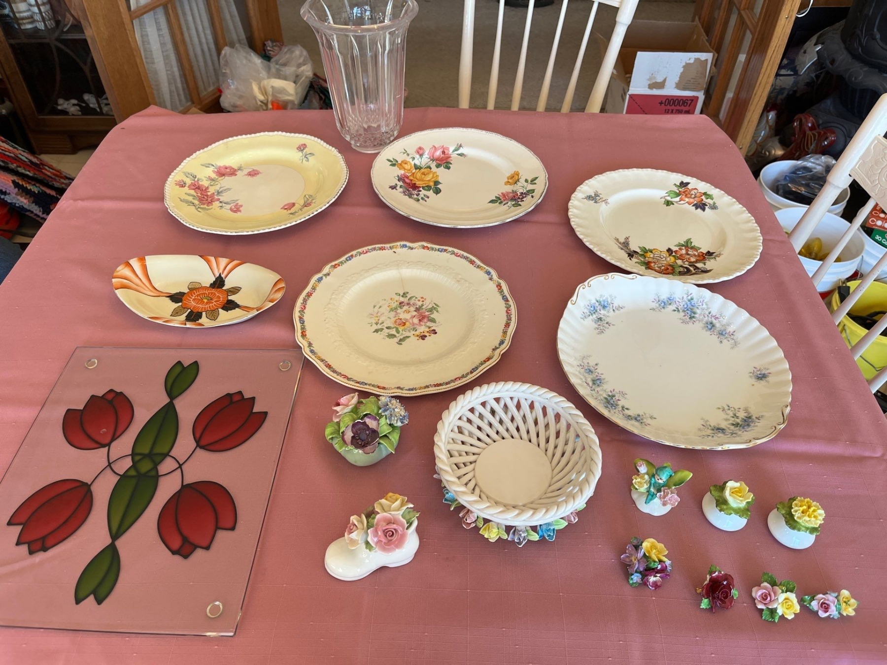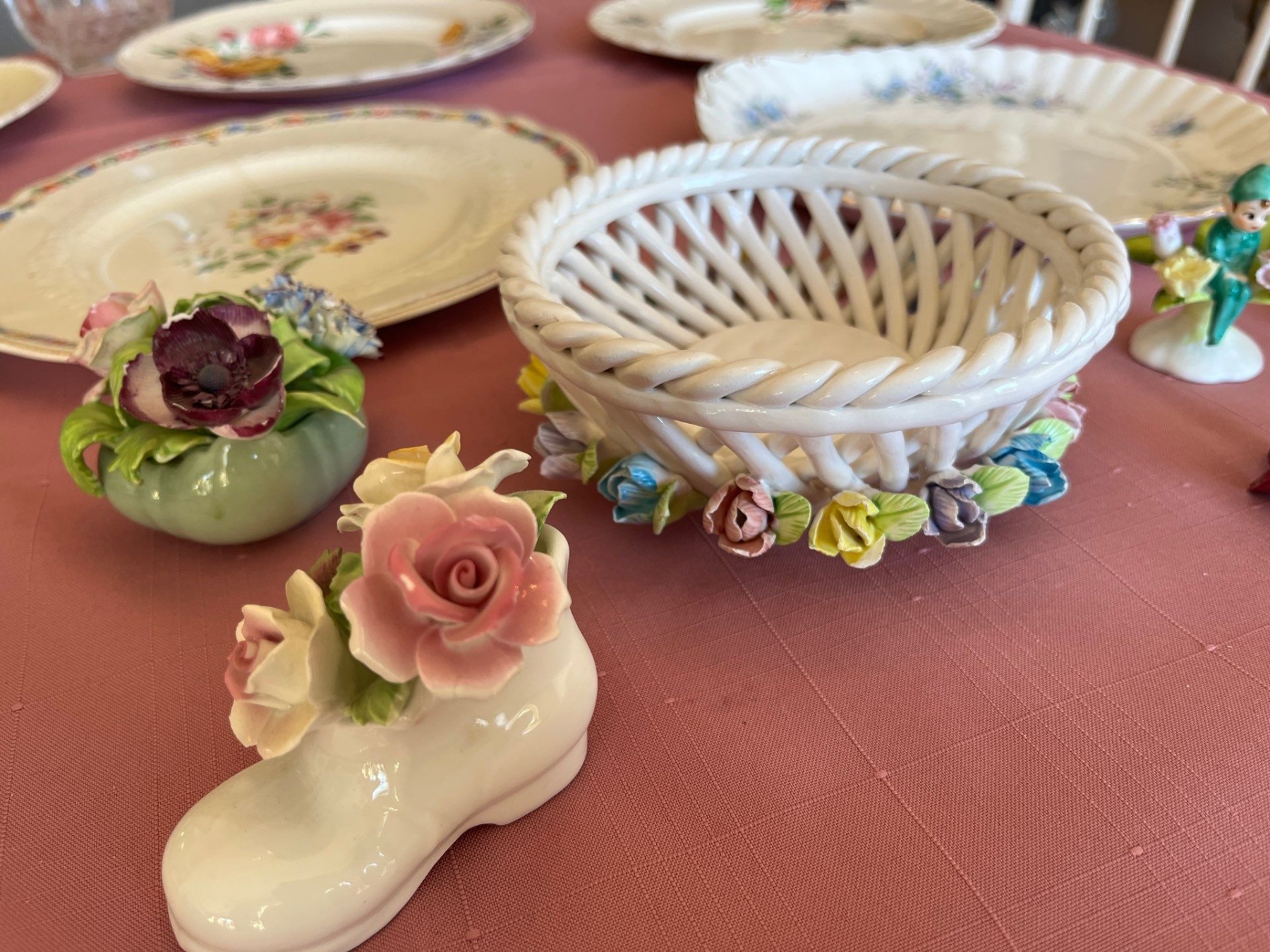 -great lot of porcelain serving plates & collection of floral Porcelain ornaments.