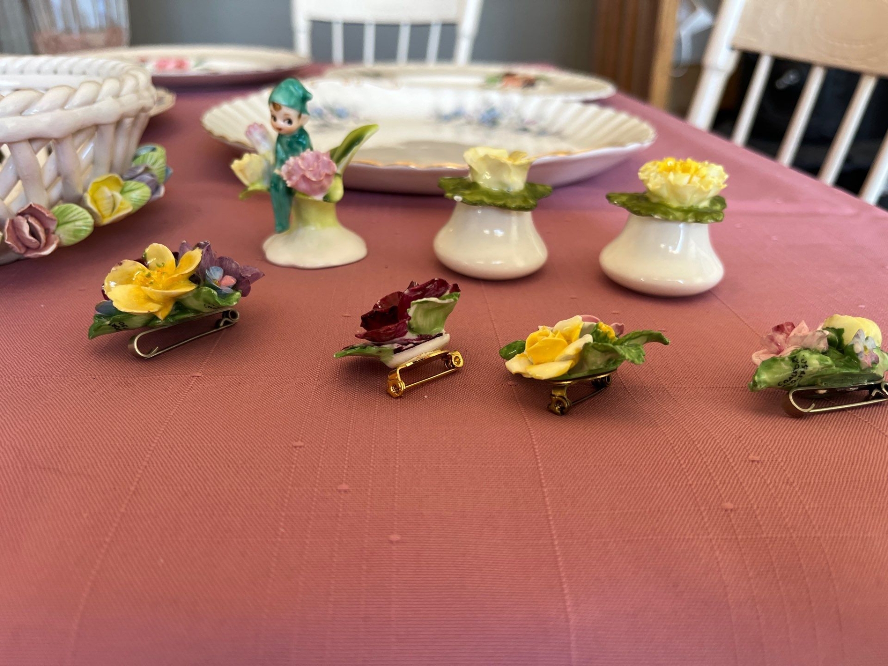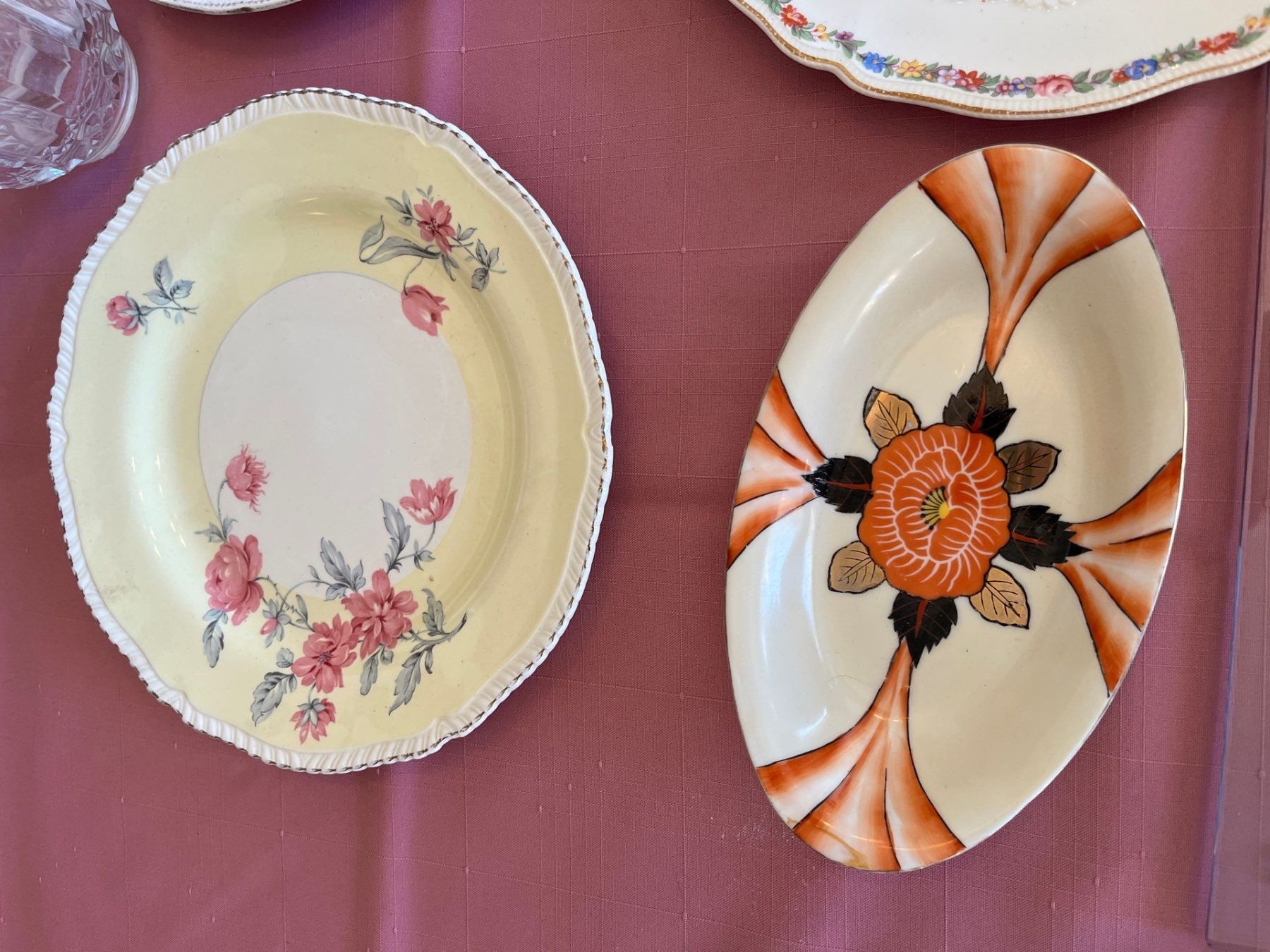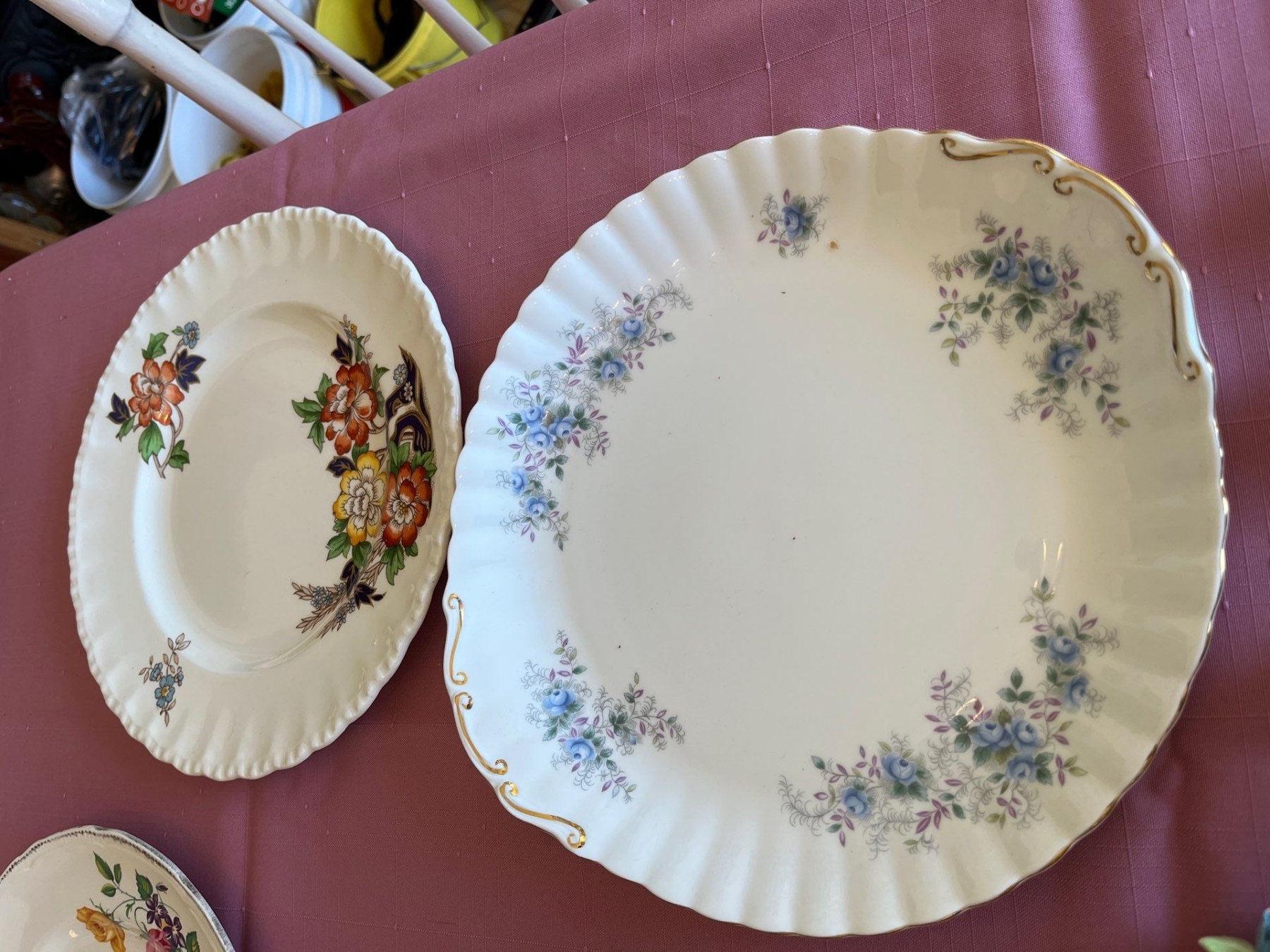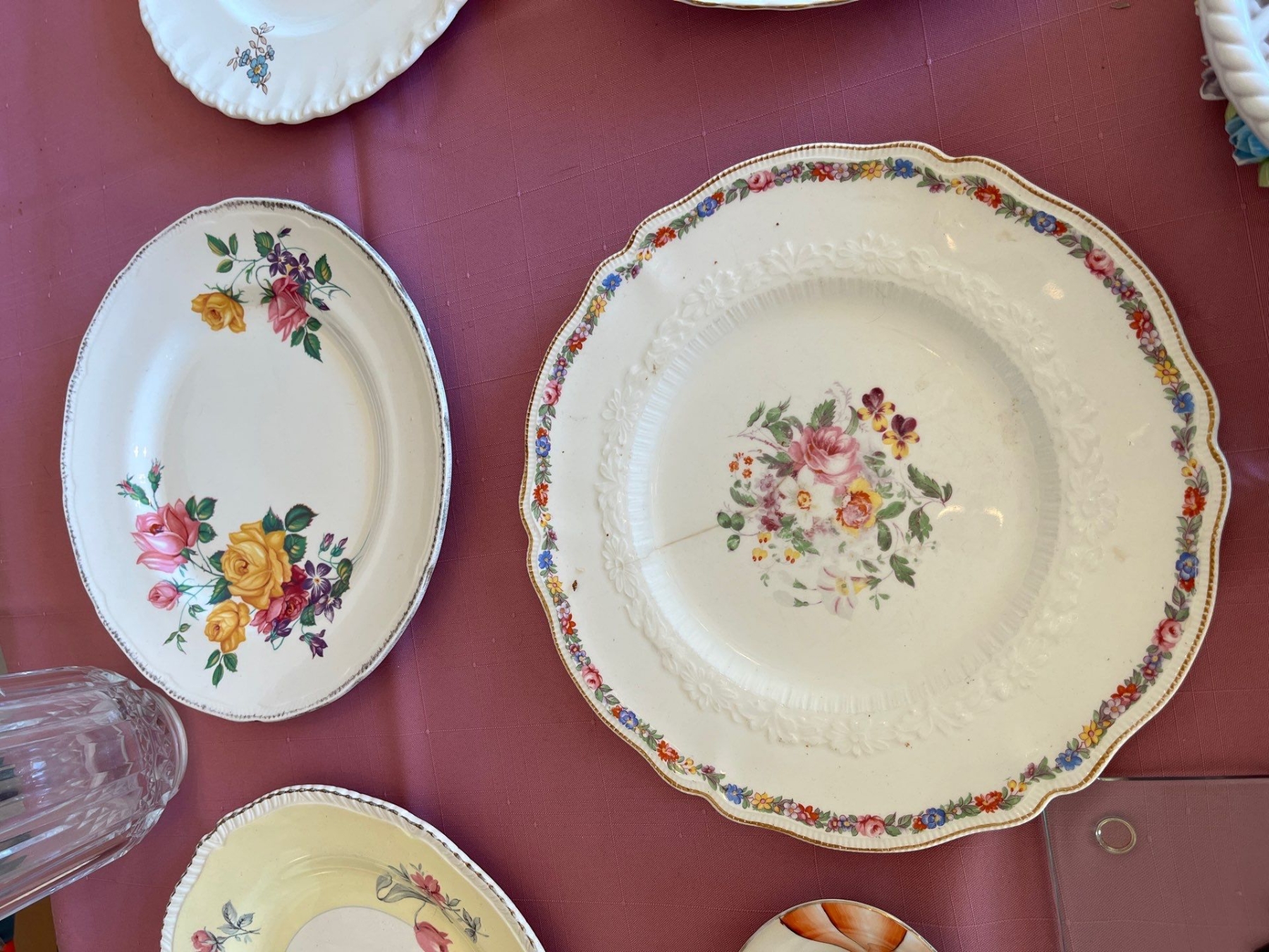 -great lot of porcelain serving plates & collection of floral Porcelain ornaments.