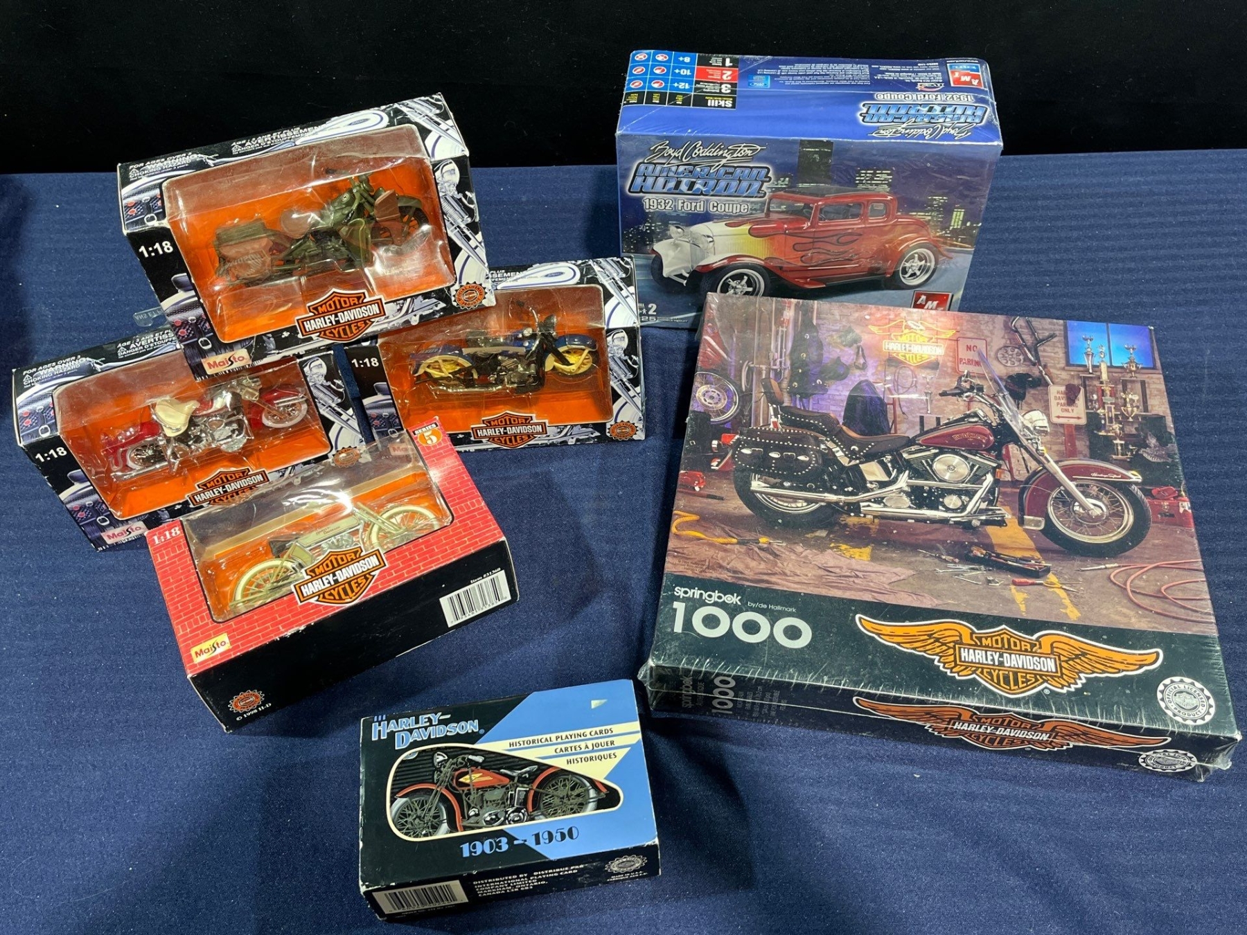 1:18 Harley Davidson Die-Casts in Original Boxes, 1,000 Piece Puzzle, Playing Cards, and more
