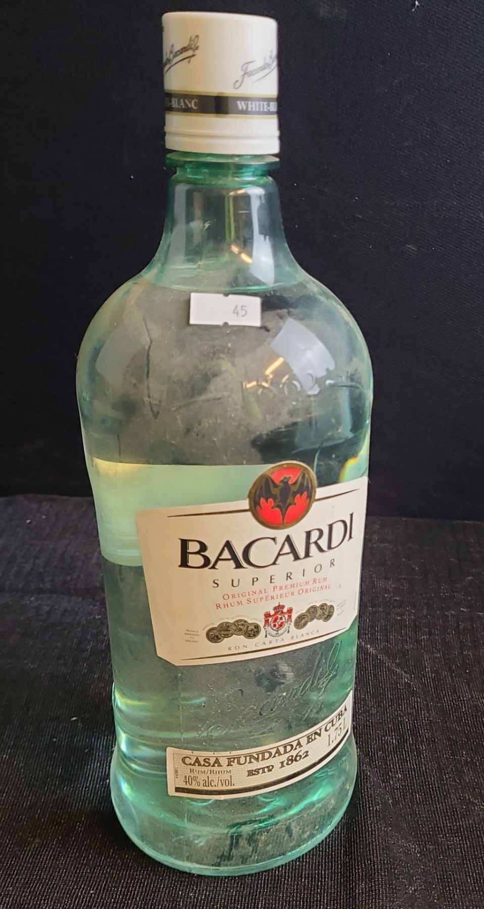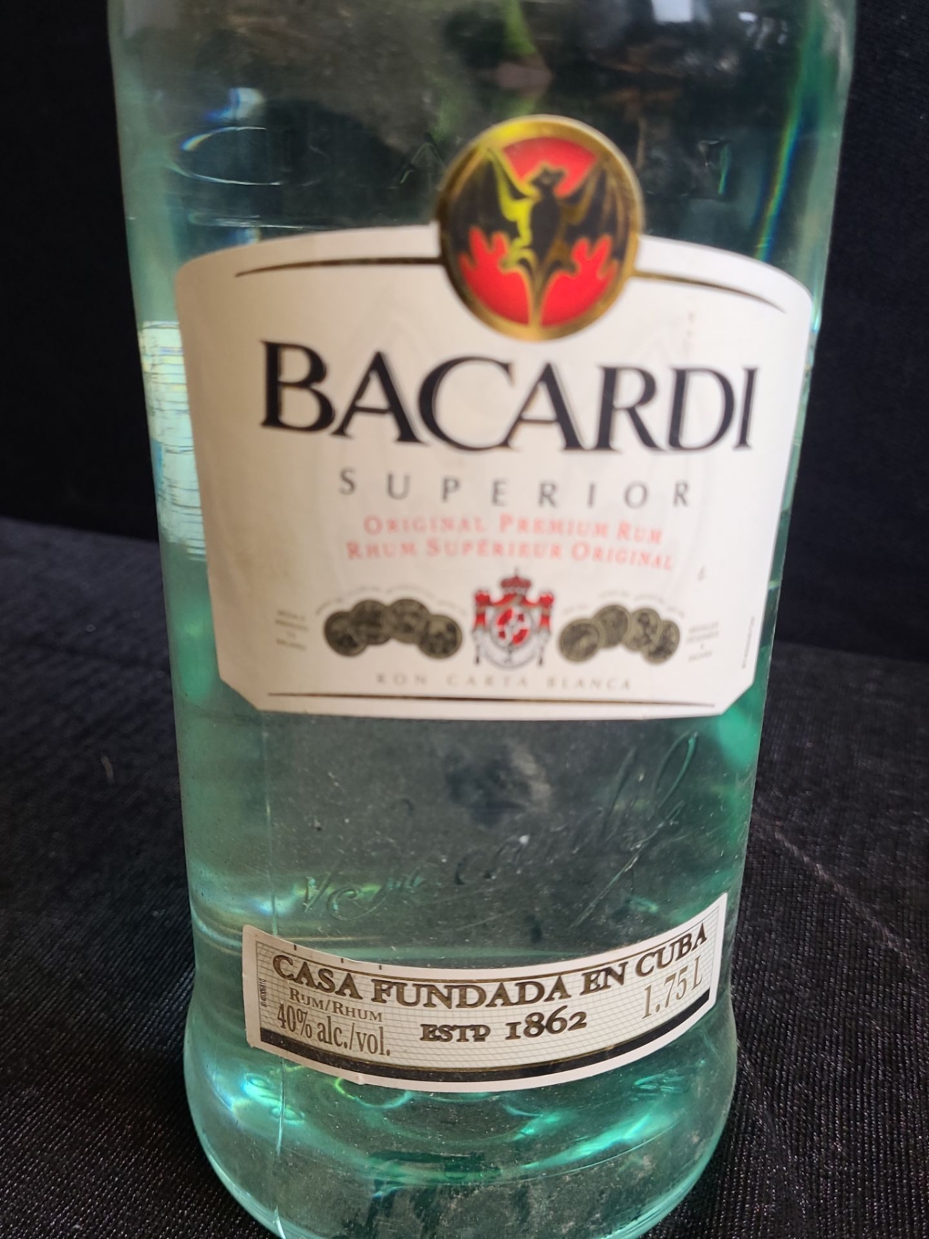 Classic big bottle of Bacardi Superior White rum. It is known for being light and aromatically balanced with subtle notes of almond, lime and vanilla.