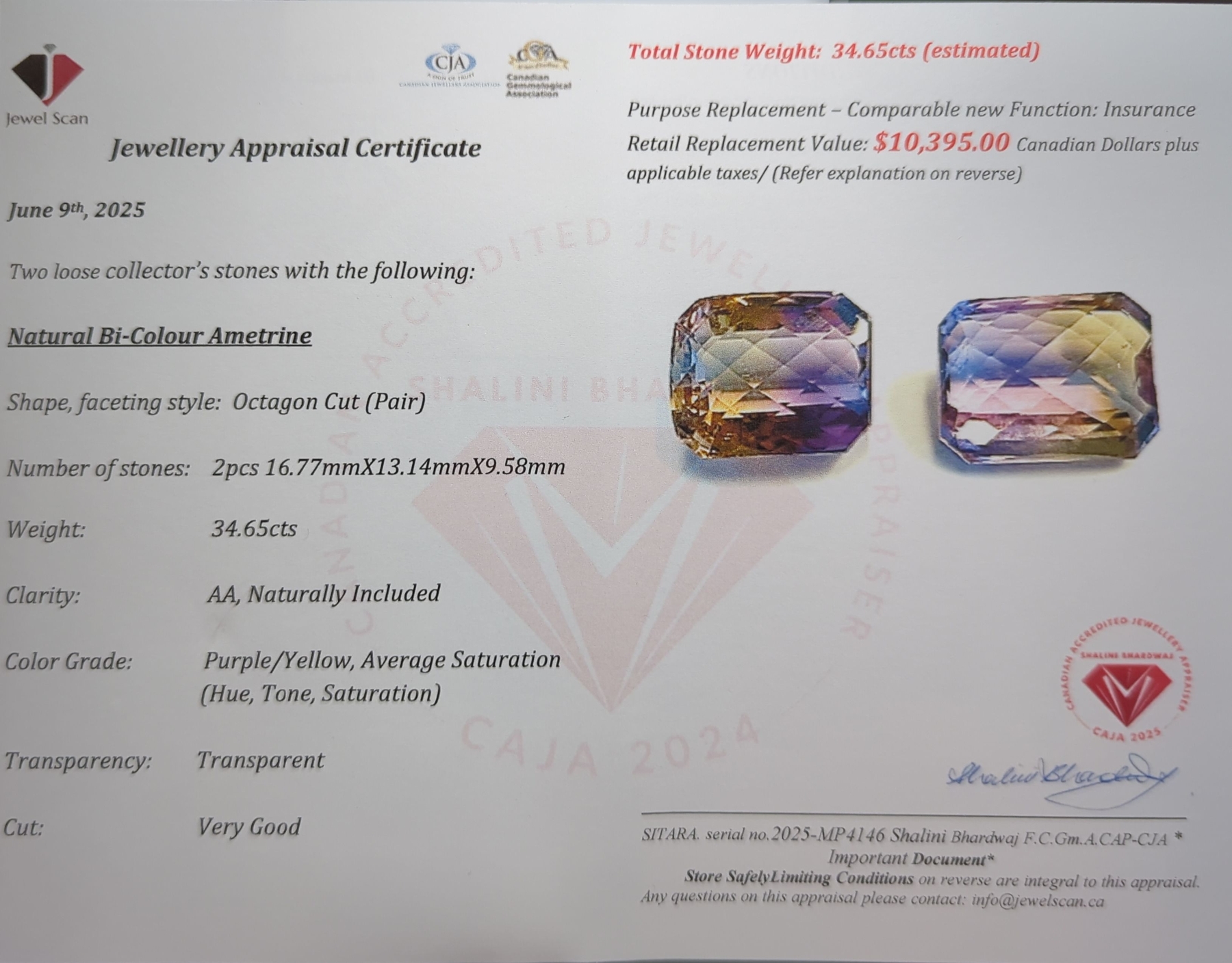 $10,395 Appraisal - 34.65 ct Cert. Ametrine Gemstone Pair