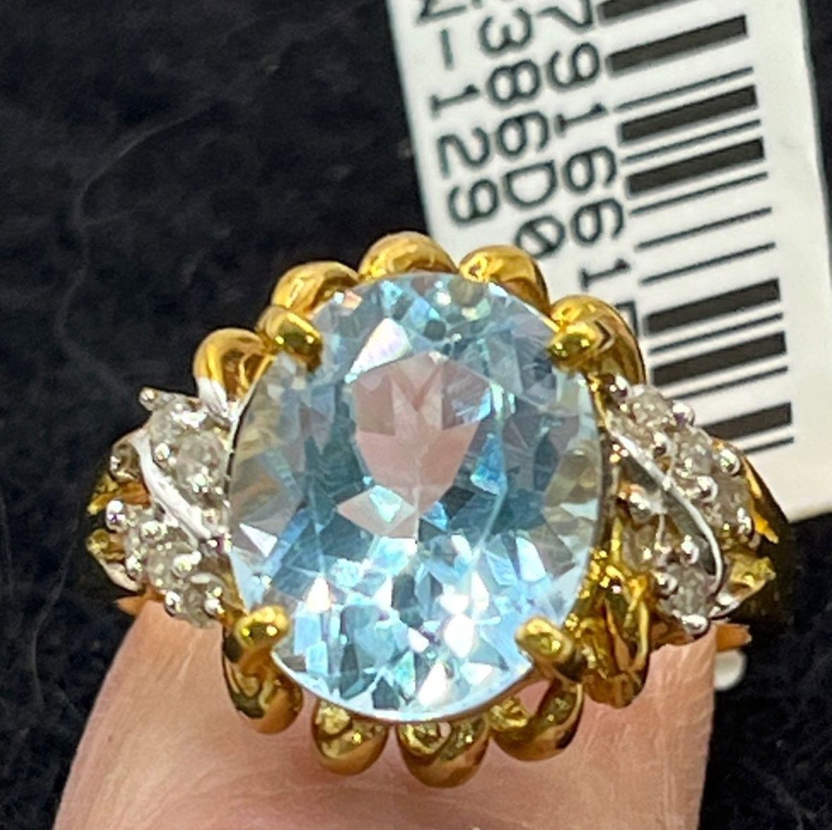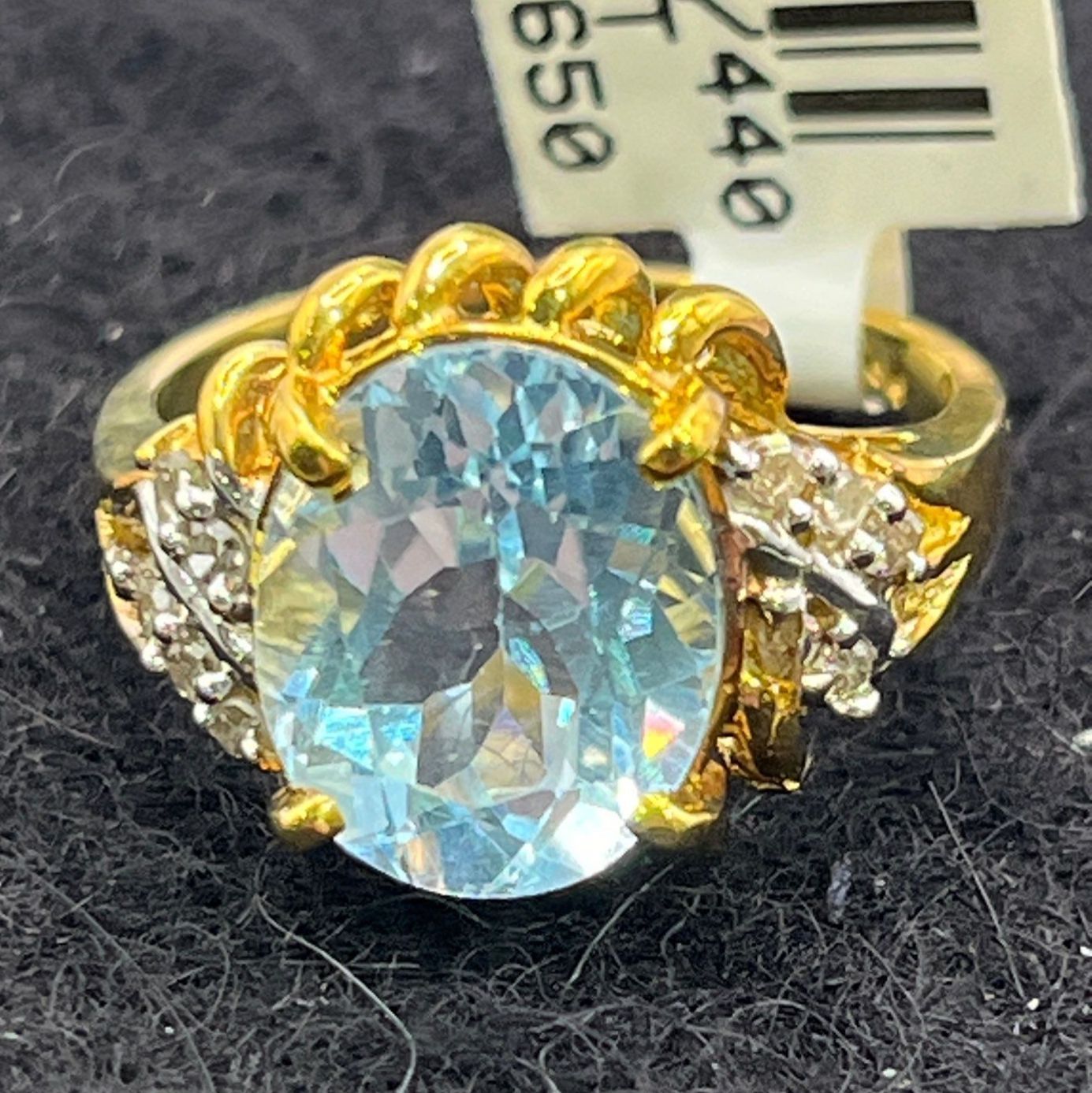 5.08 karat blue topaz, 0.14 karat diamond, 10 karat gold