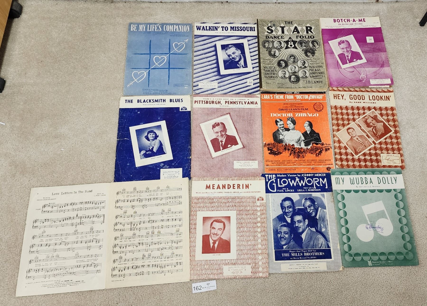 12 Vintage Music Sheets - Doctor Zhivago, Hey Good Looking by Hank Williams, et al