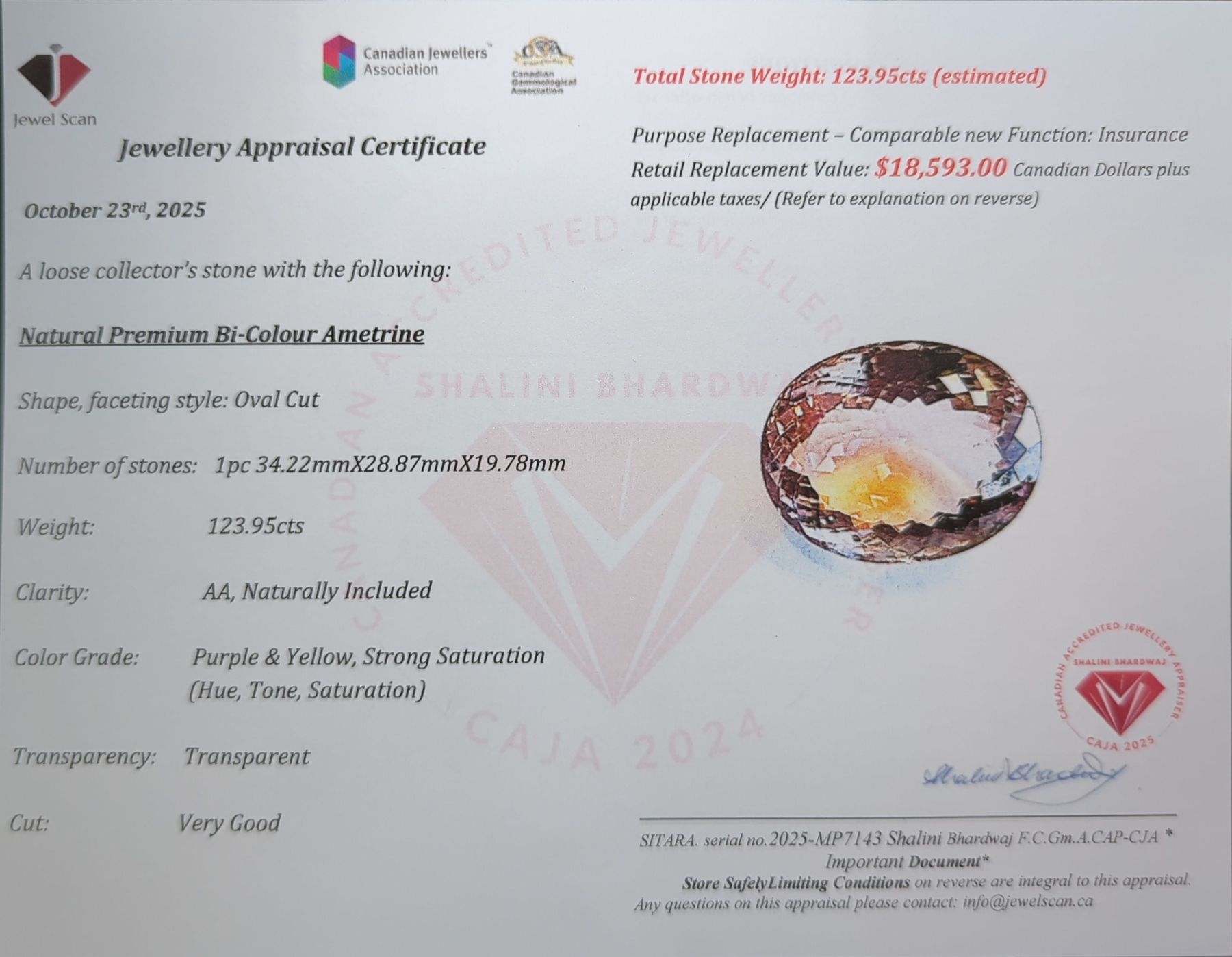 123.95 ct Certified Bi-Colour Ametrine Gemstone ($18,593 Appraisal)