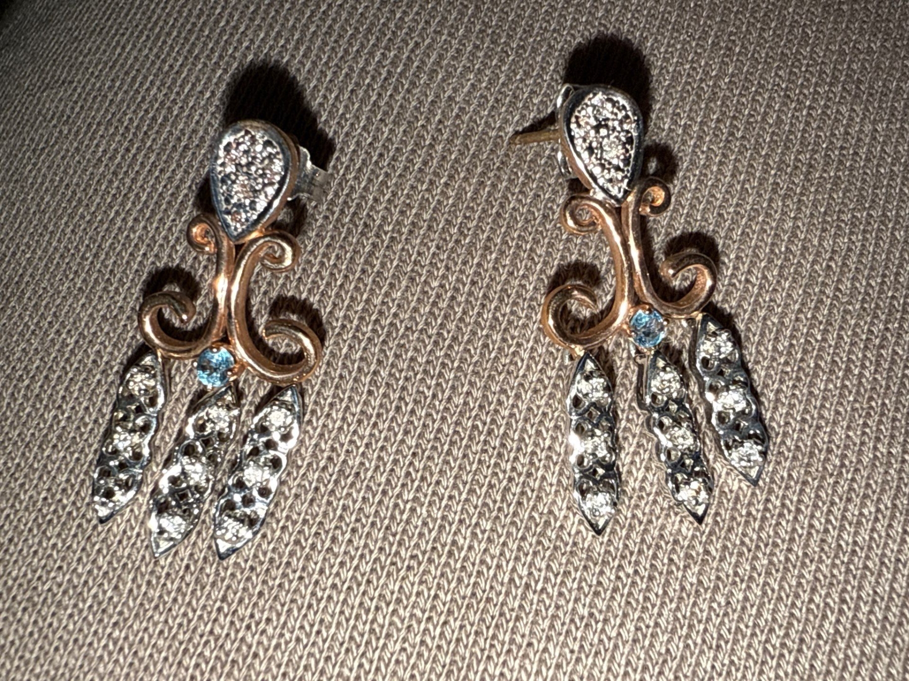 14K Stamped Rose Gold Earrings (5.05g), One Stone Missing See Photos, 925 Stamped Backings