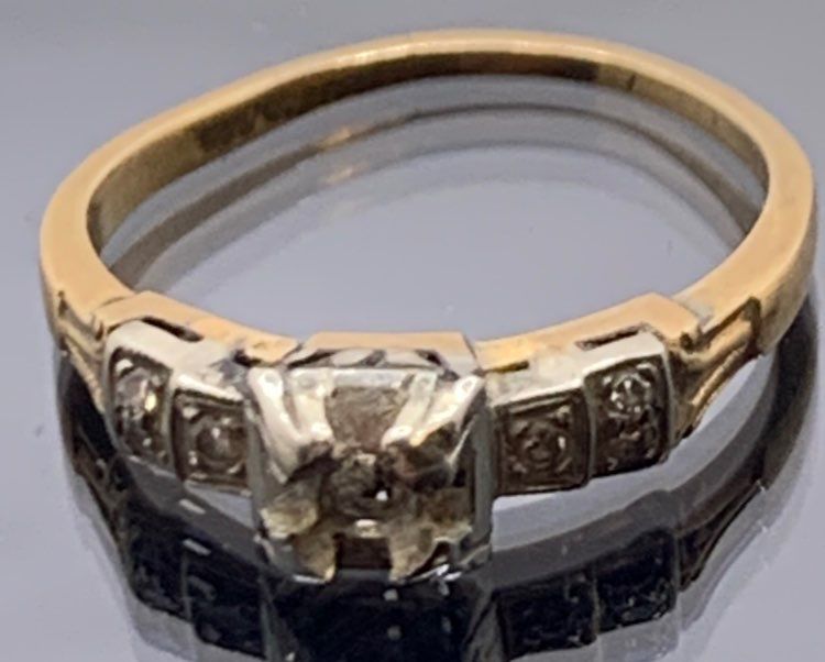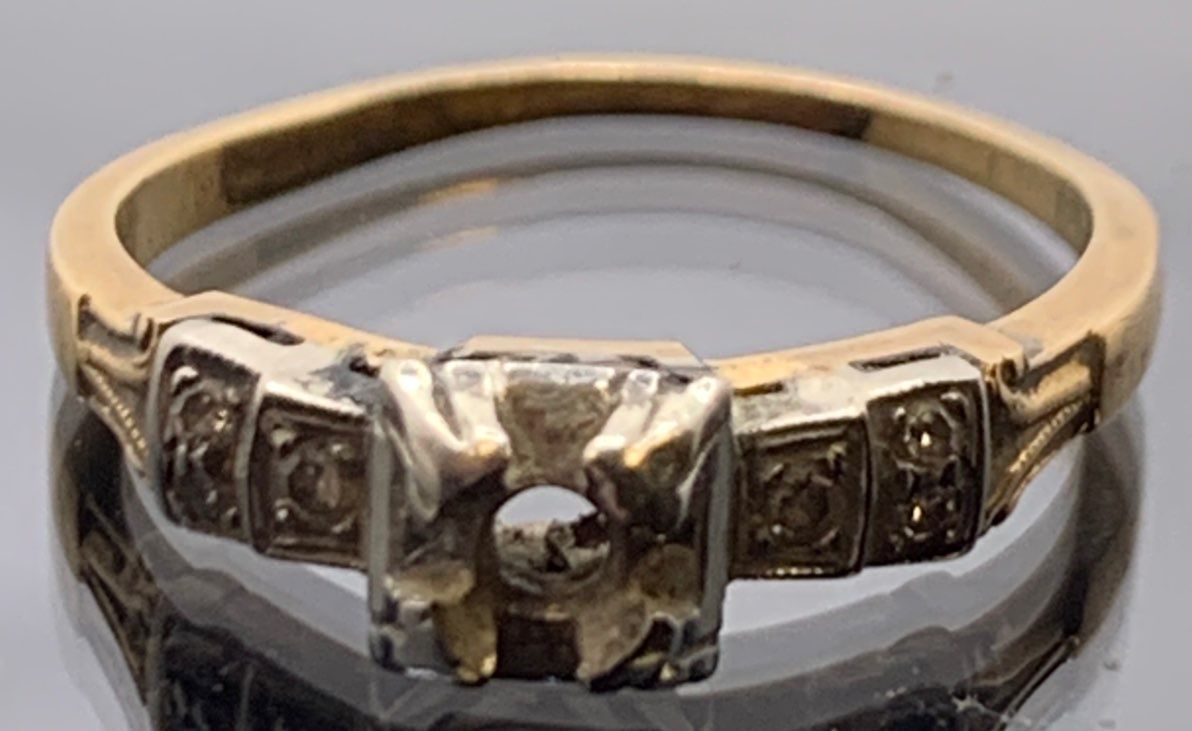 14k Gold Ring w/ Small Colorless Stones (Bent & Missing Centre Stone), Weighs 2.3g