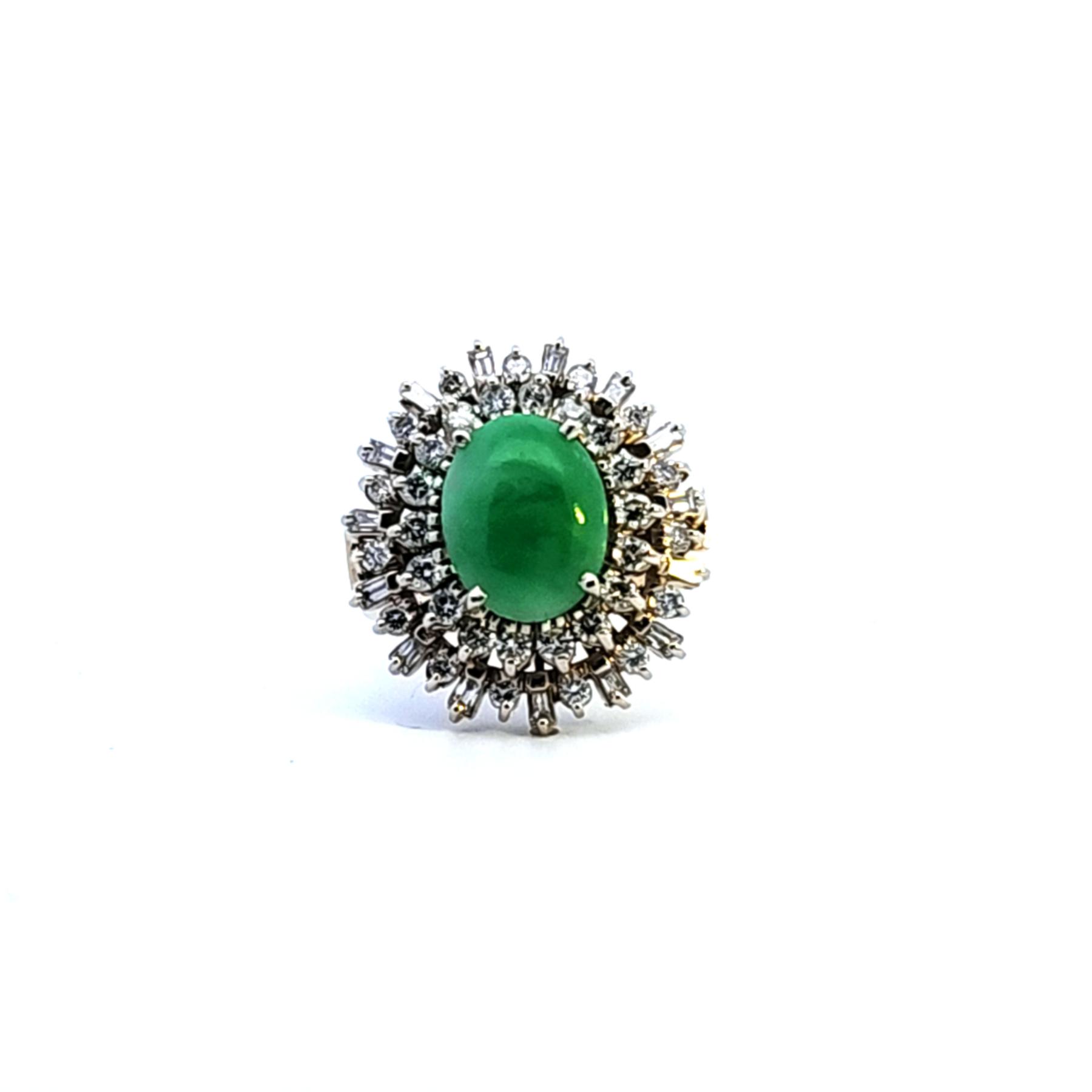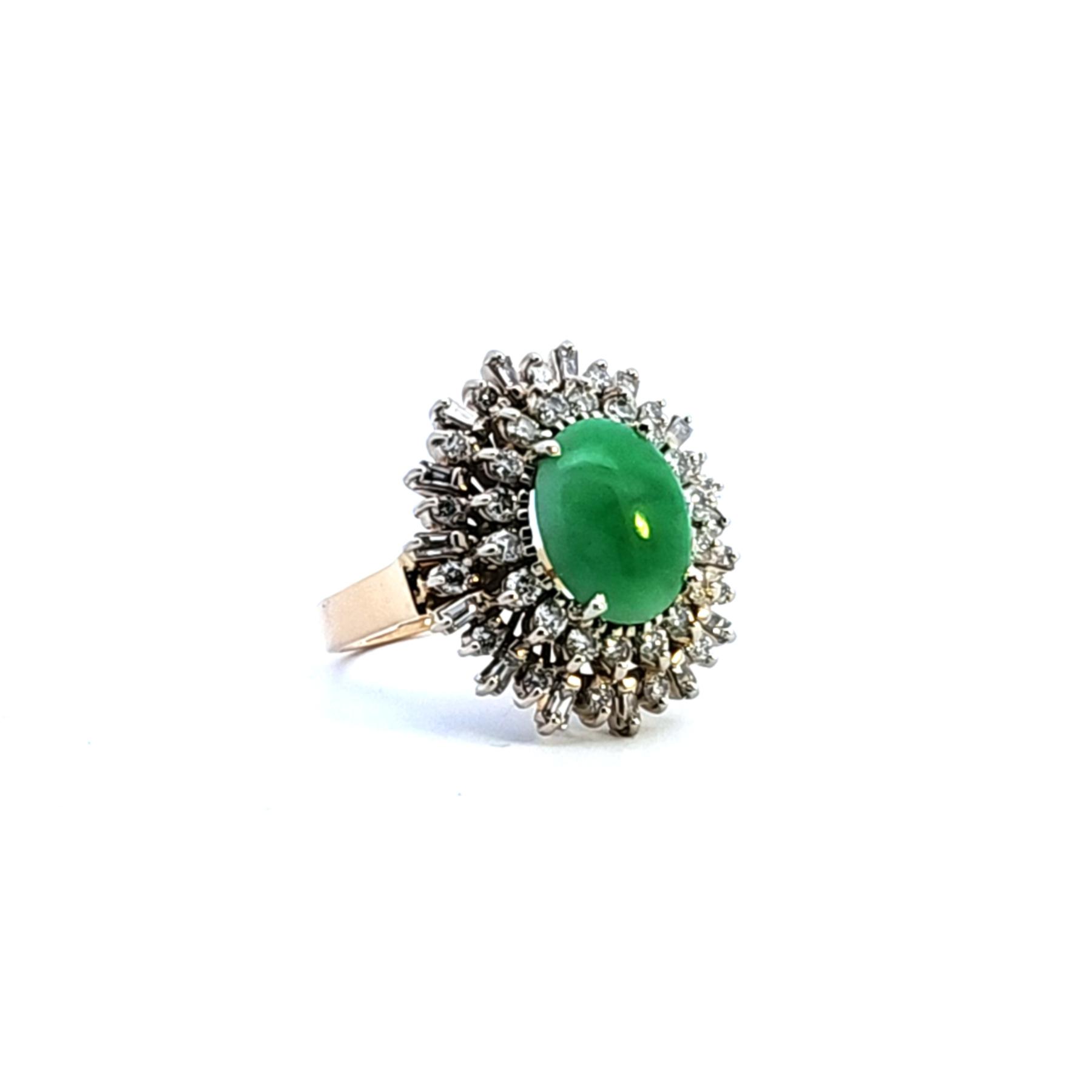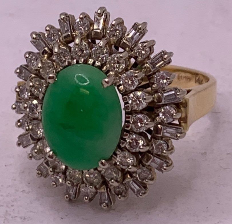 14k Yellow Gold Ring w/ Jadeite Centre Stone and Diamonds - Weighs 9.3g