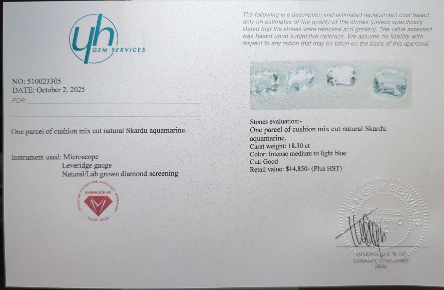 18.3 ct Certified Blue Aquamarine Gemstone Parcel ($14,850 Appraisal)