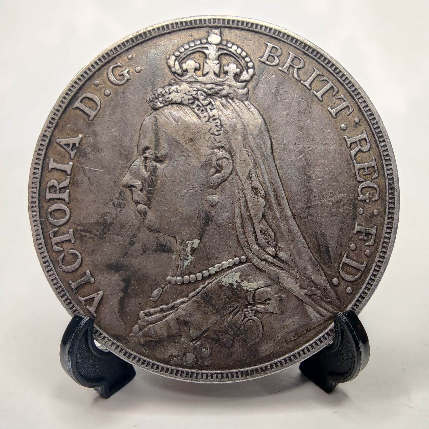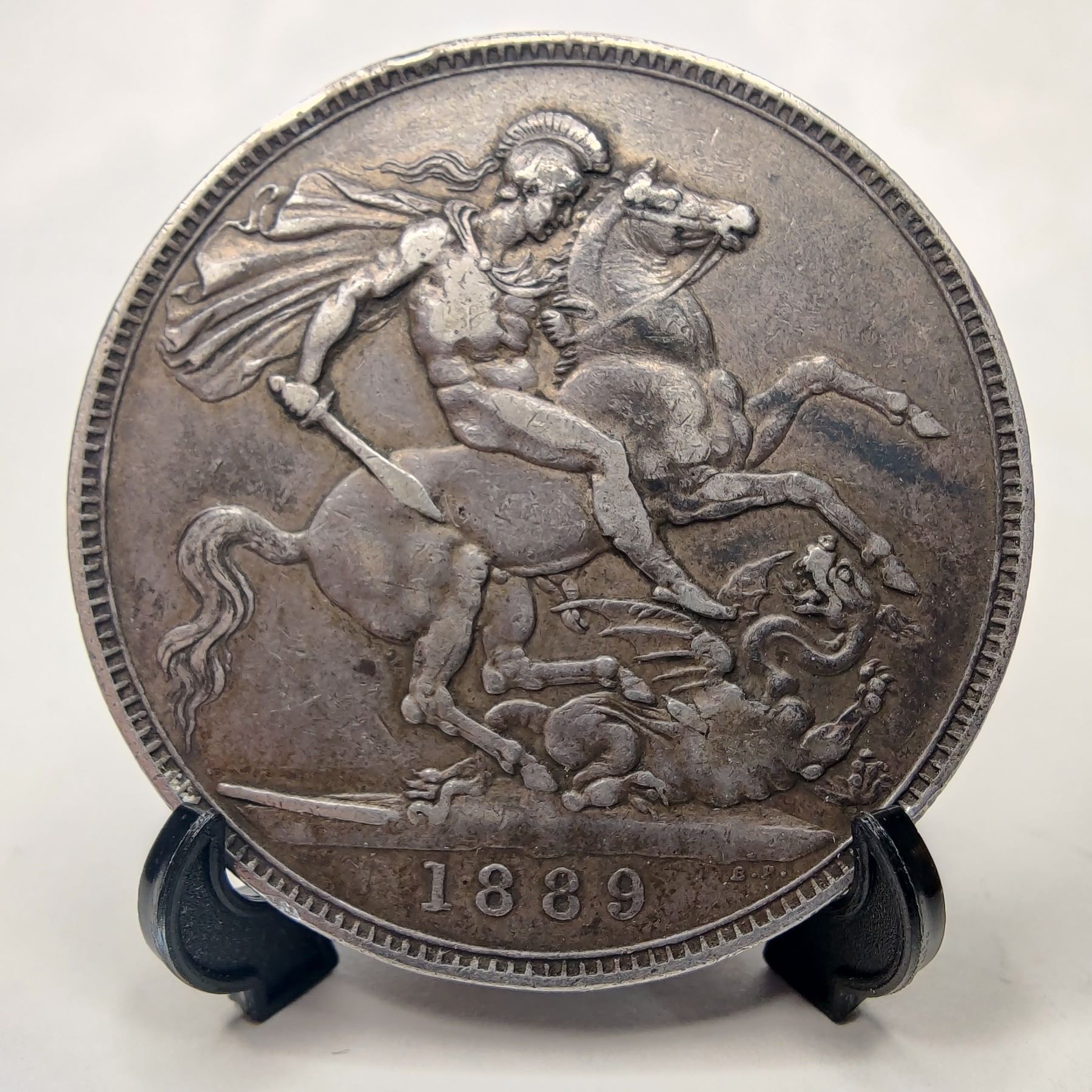 Silver Coin Victoria Crown Plain 1889, Graded as VF, in case.