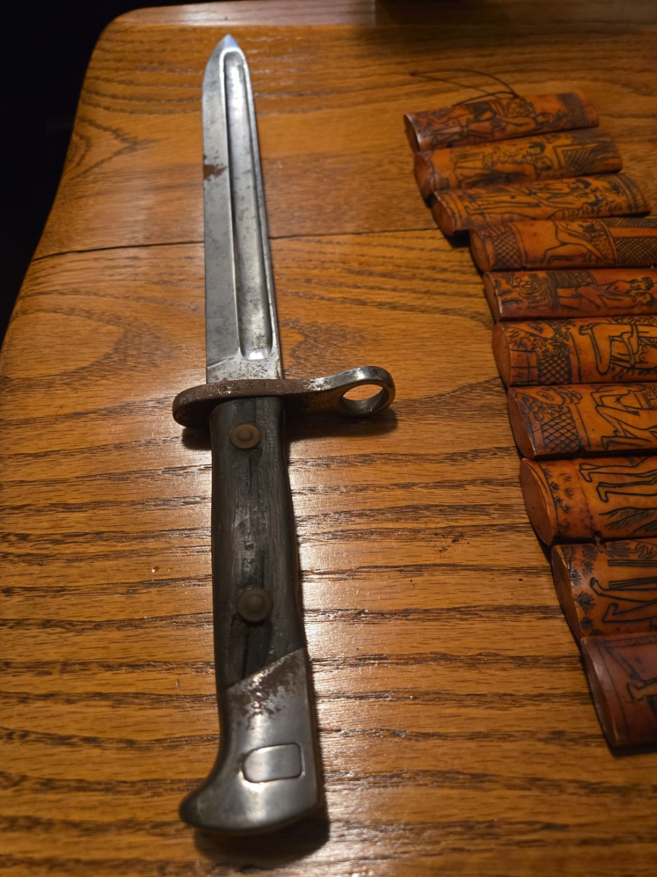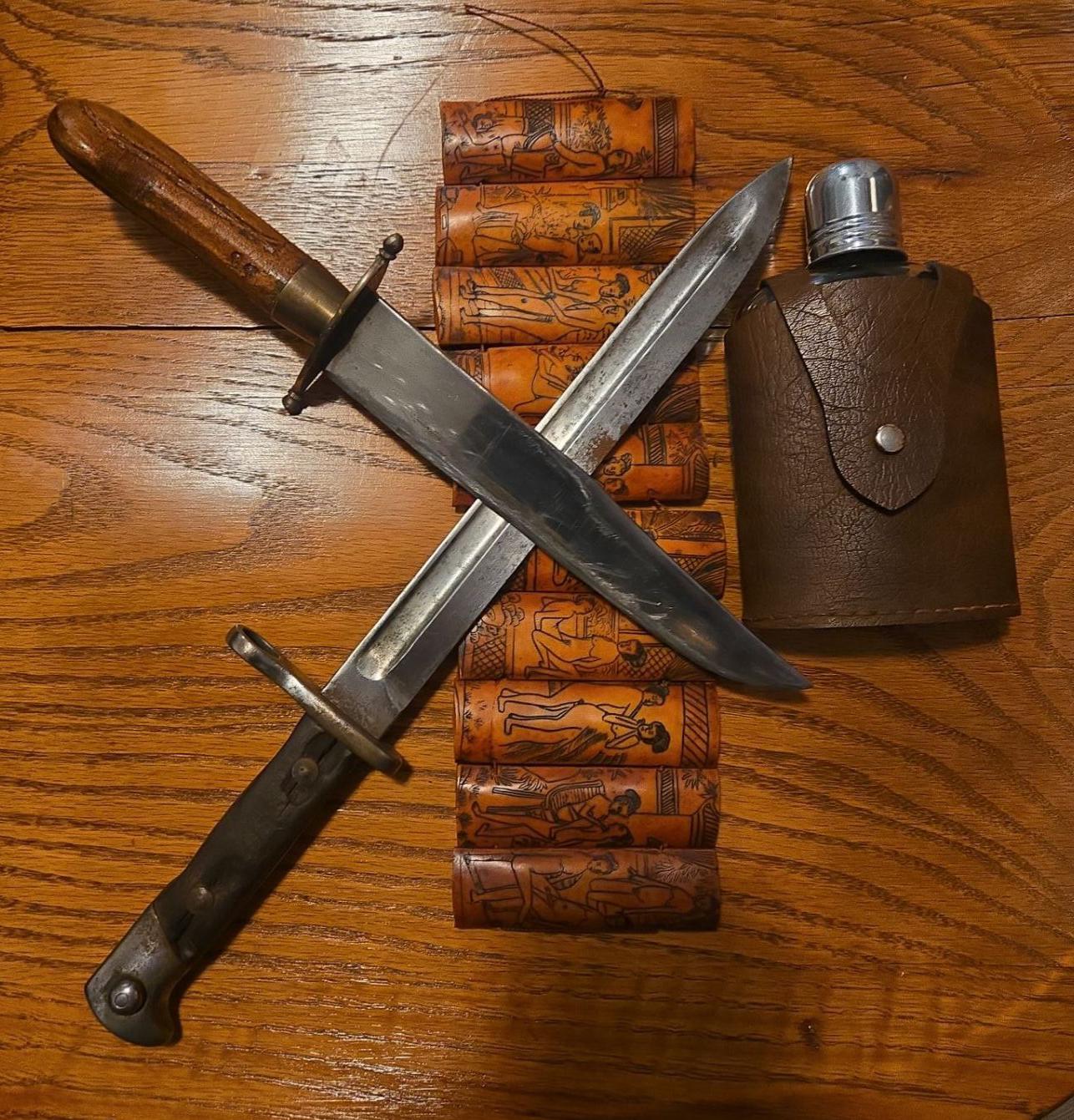 1898 Mauser Bayonet 5439, Wooden Flask, Asian Relic,