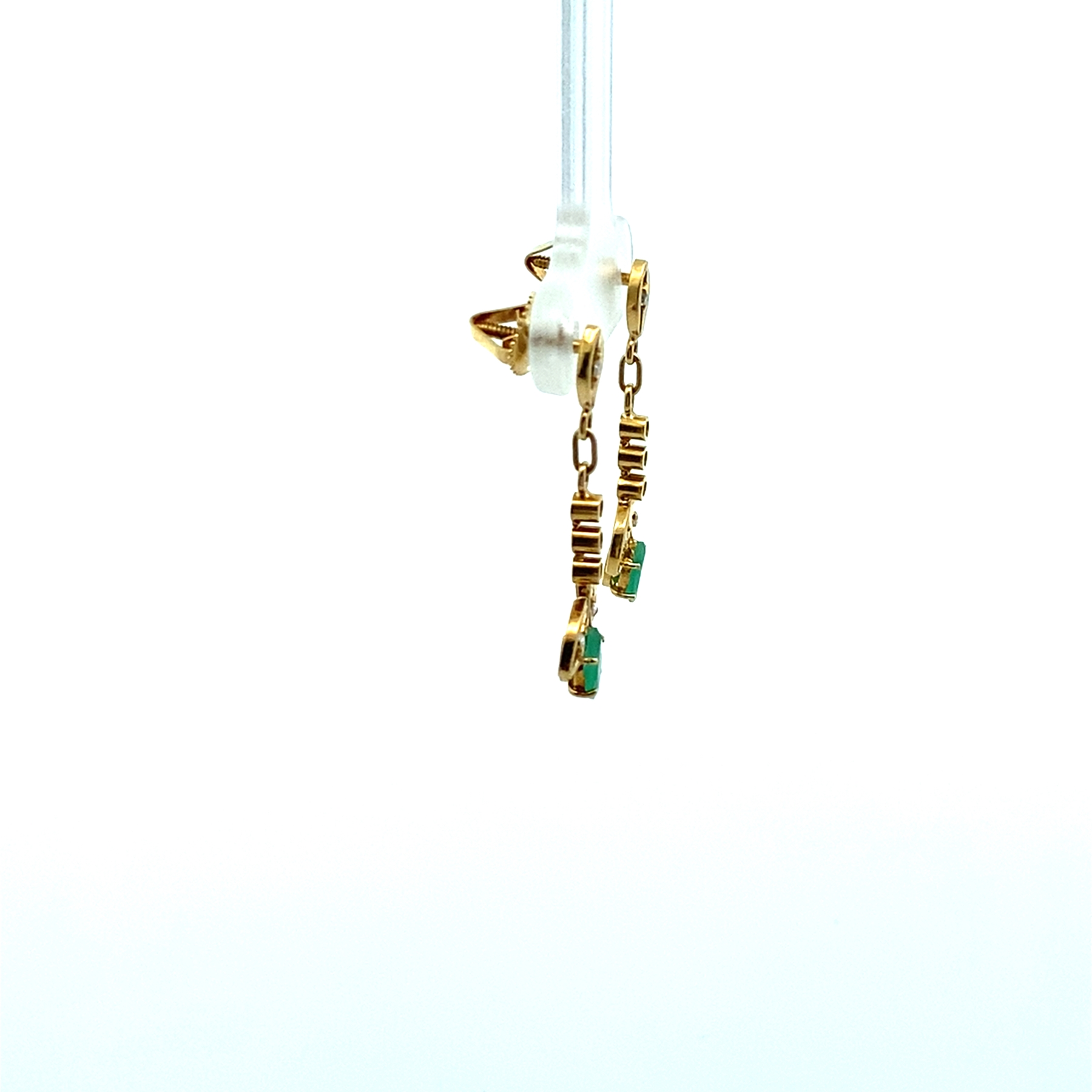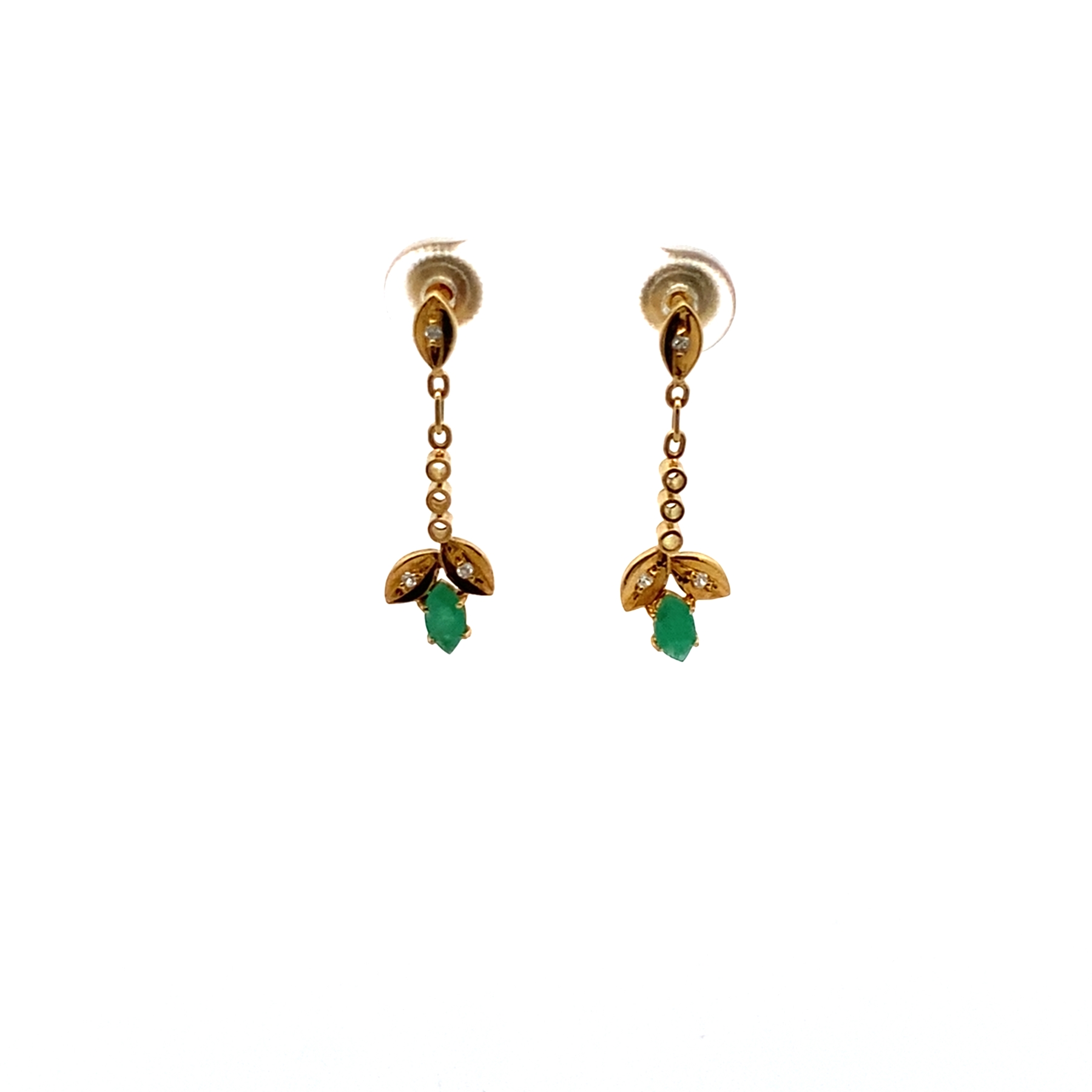 18KY Emerald & Diamond Drop Earrings 0.03CTW GH/I1-3
