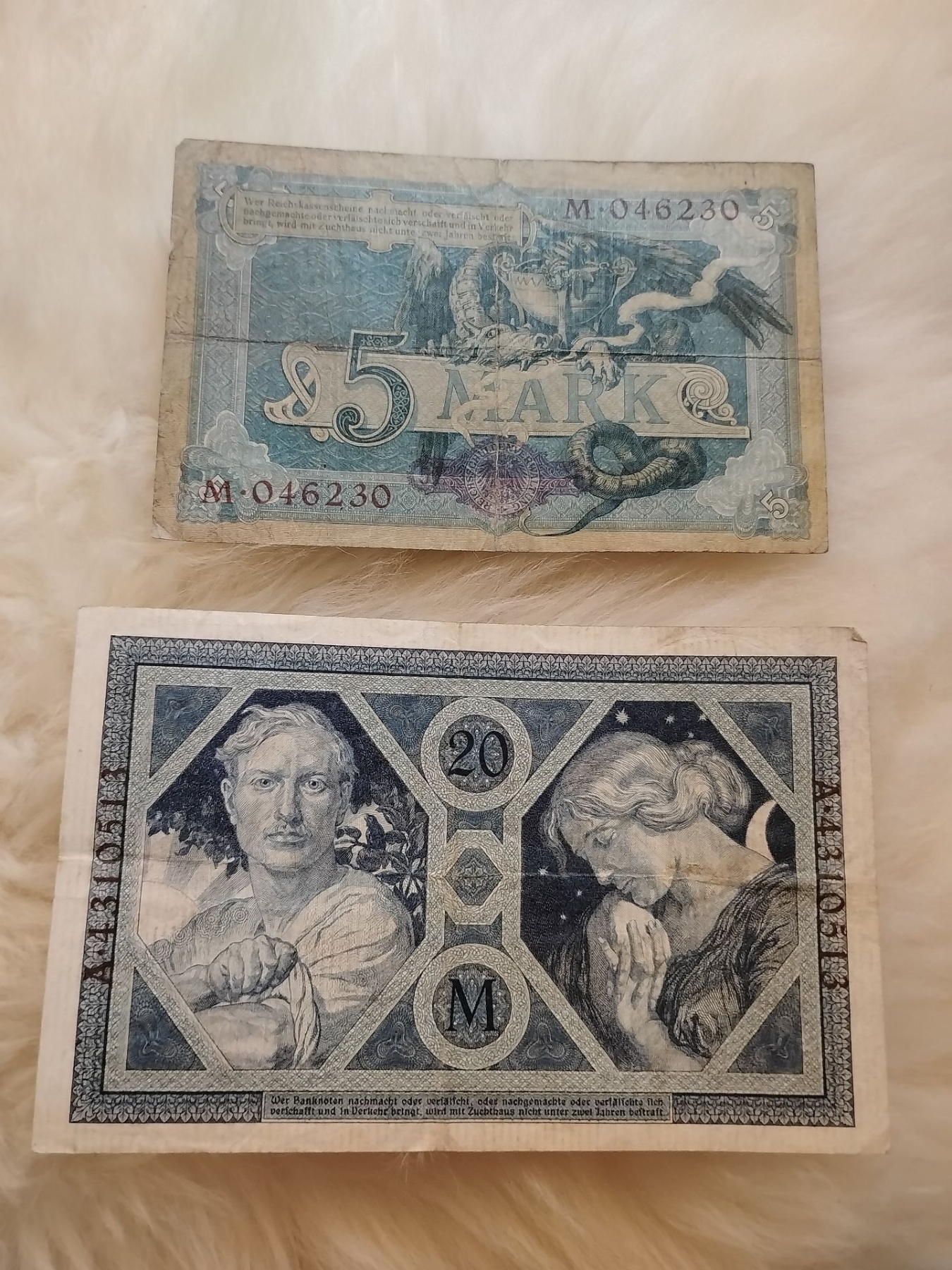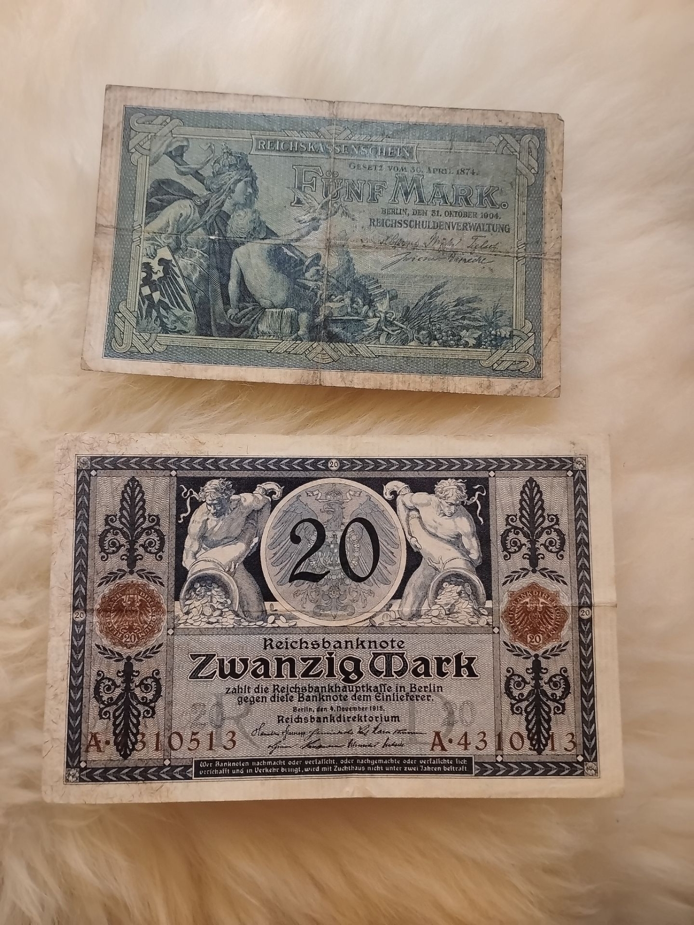 1904 Funf Marc Reischkassenschein & 1915 Zwangzig Mark