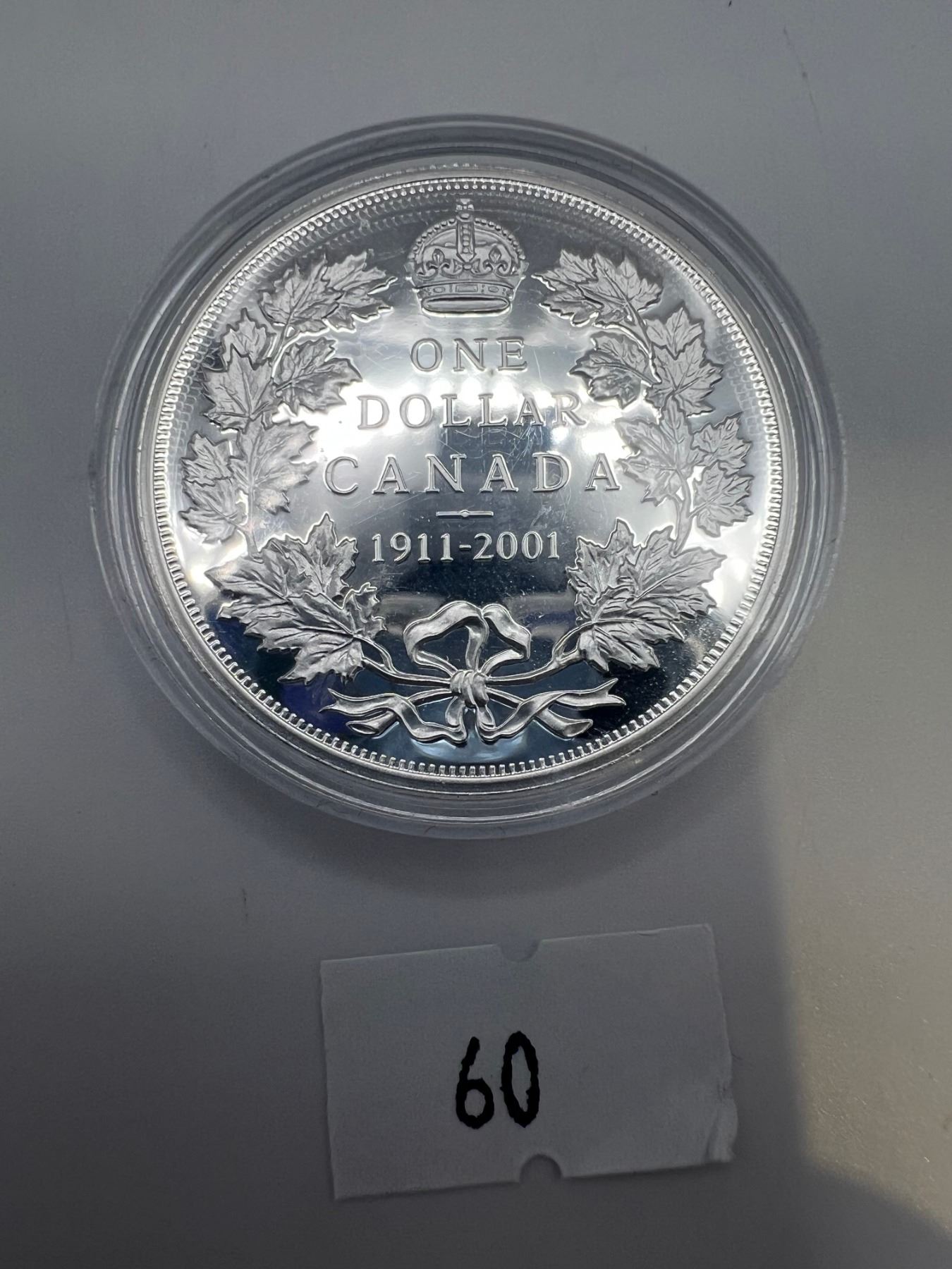 The 1911 Canadian silver dollar is the most valuable Canadian coin known. Only three examples exist, two sterling silver trial strikes and one lead strike. This coin commemorates the 1911 dollar with a reproduction of the original design and a double date.