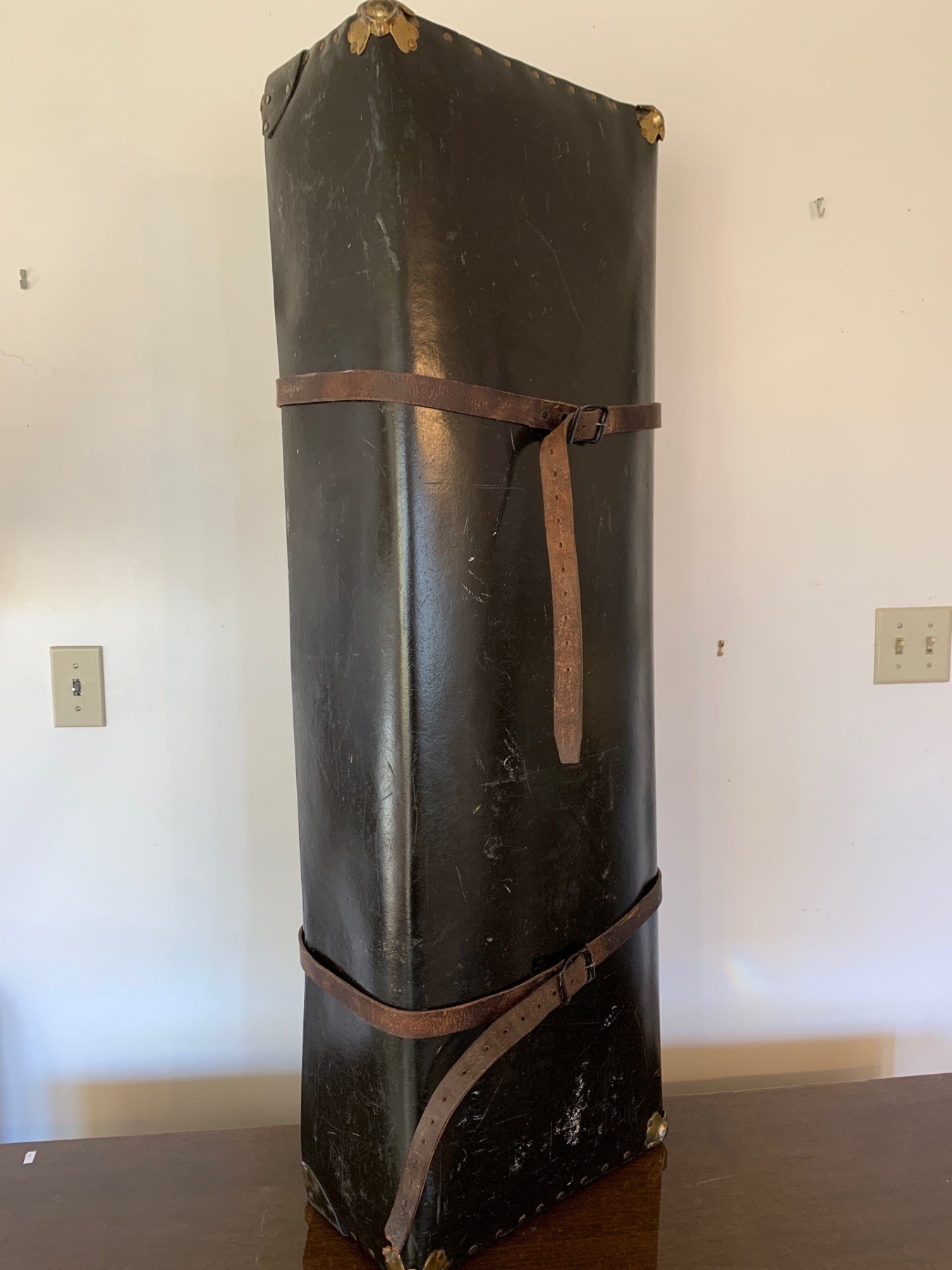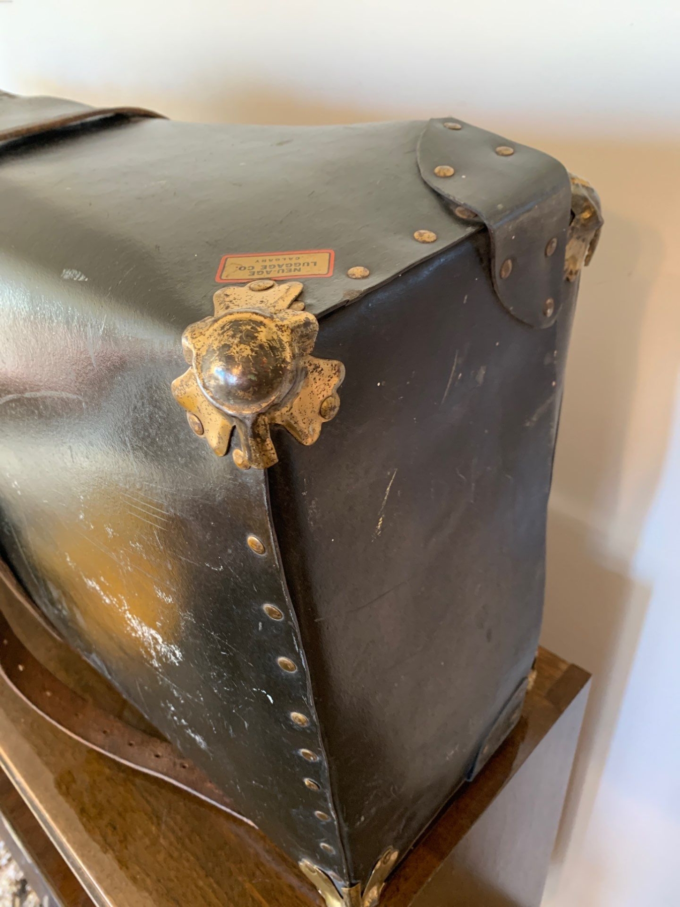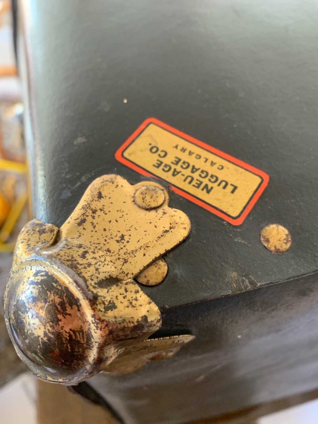 1920 Neu-Age Luggage Company Wardrobe Trunk. Beautiful Leather Bindings, Made in Calgary 47"x15"