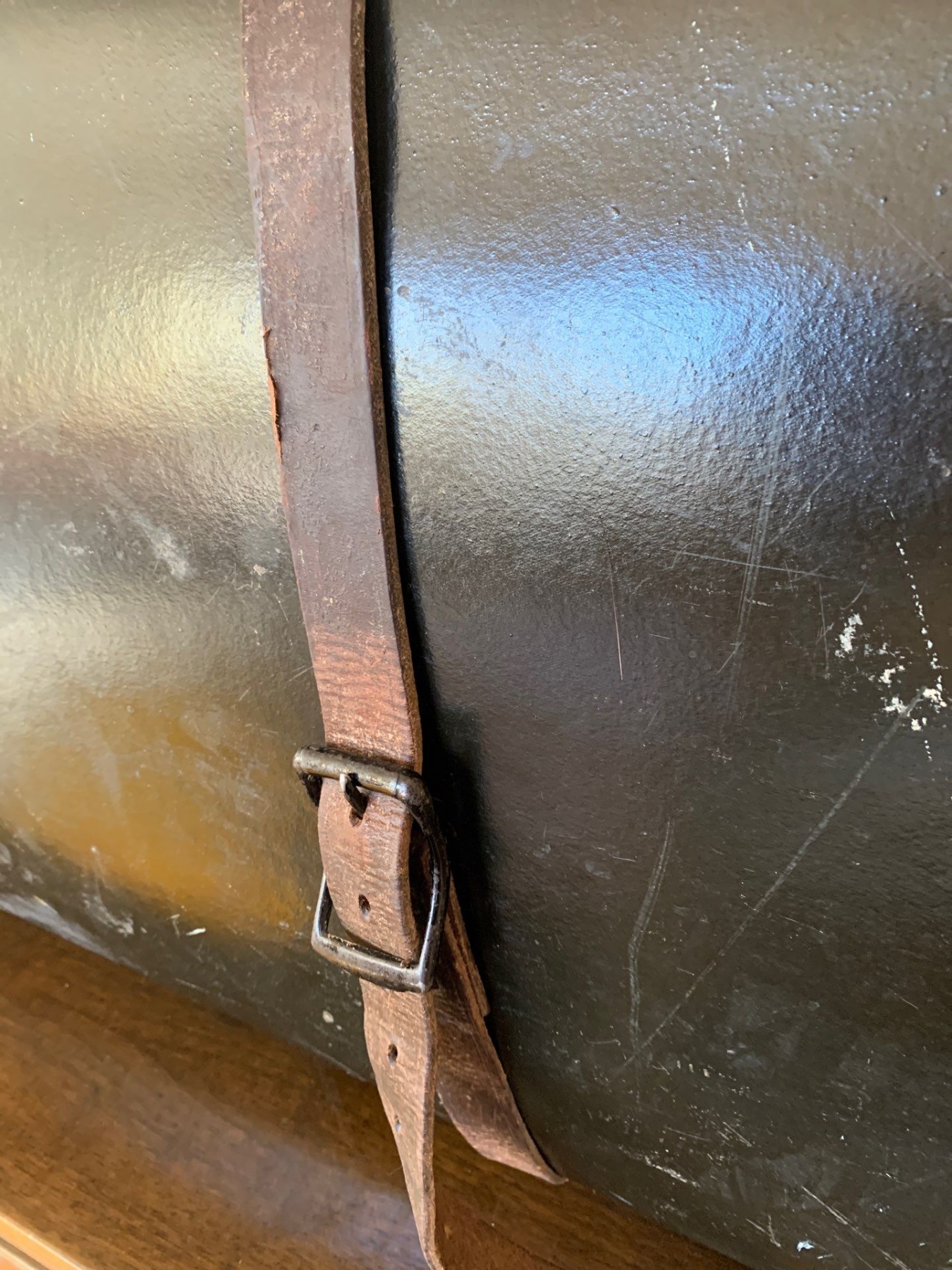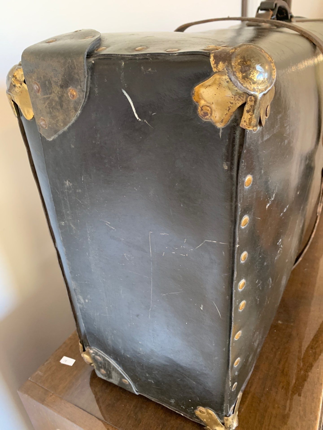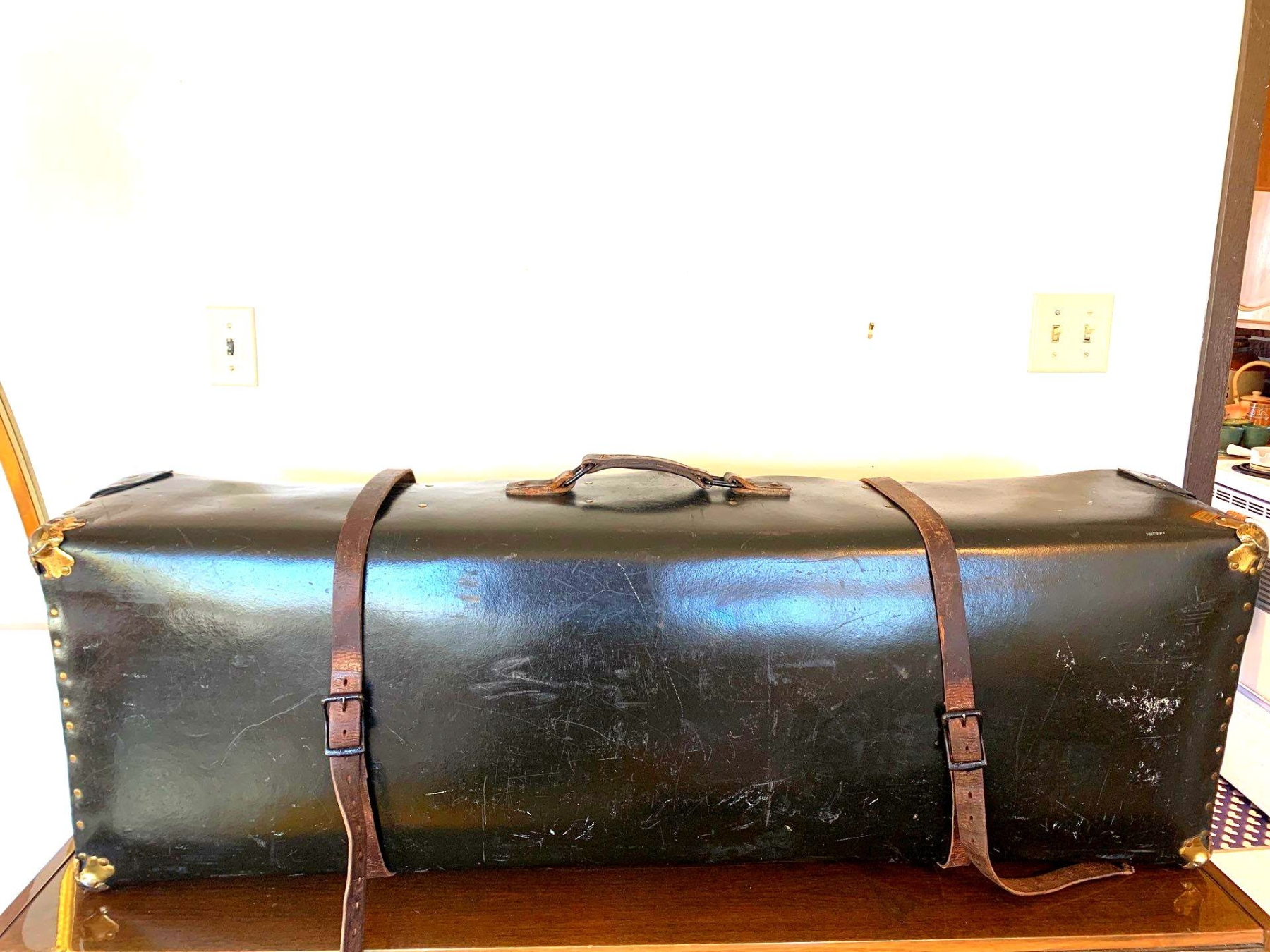 1920 Neu-Age Luggage Company Wardrobe Trunk. Beautiful Leather Bindings, Made in Calgary 47"x15"