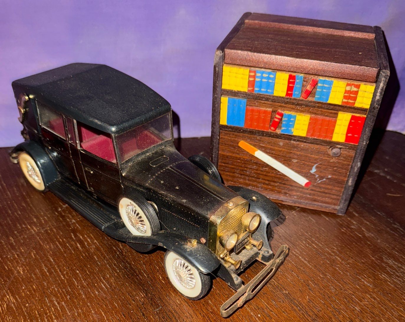 1928 Lincoln Display Model Car & Cigarette Musical Wooden Box/Holder