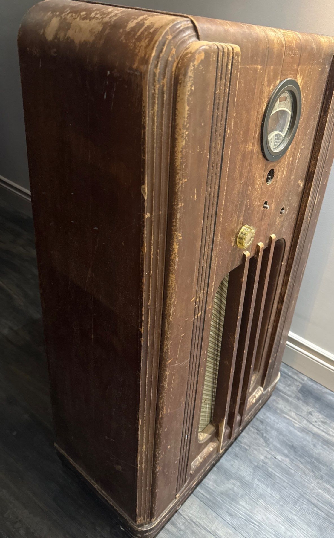 1930's Vintage Philco Console Radio-Art Deco Wooden Cabinet