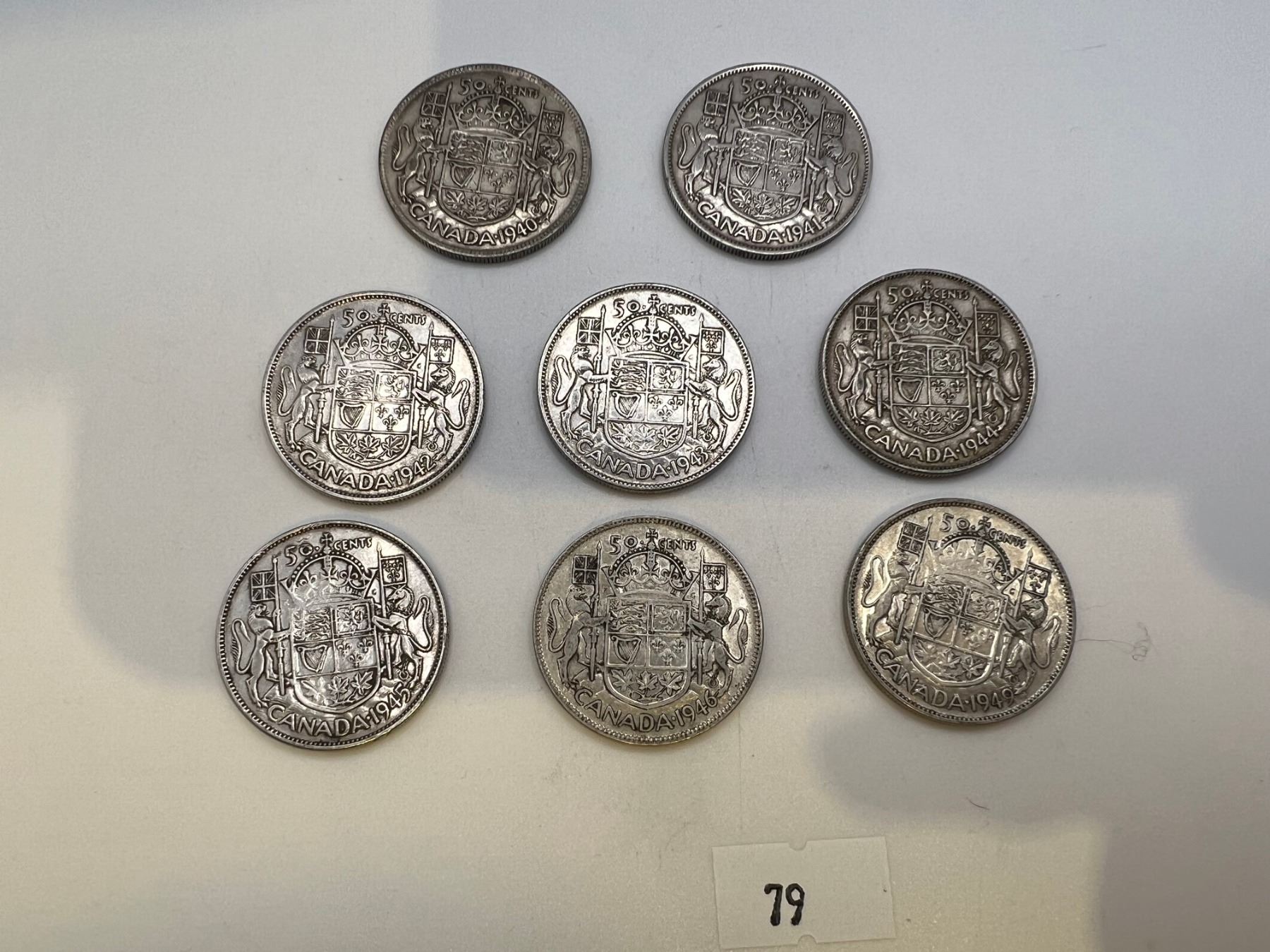 1940-1946 & 1949 Canadian Silver 50 Cent Pieces