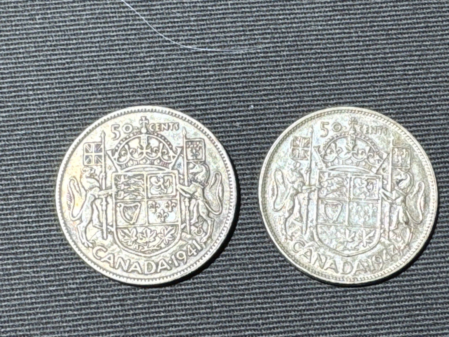 1941 & 44 Canadian Silver Half Dollars