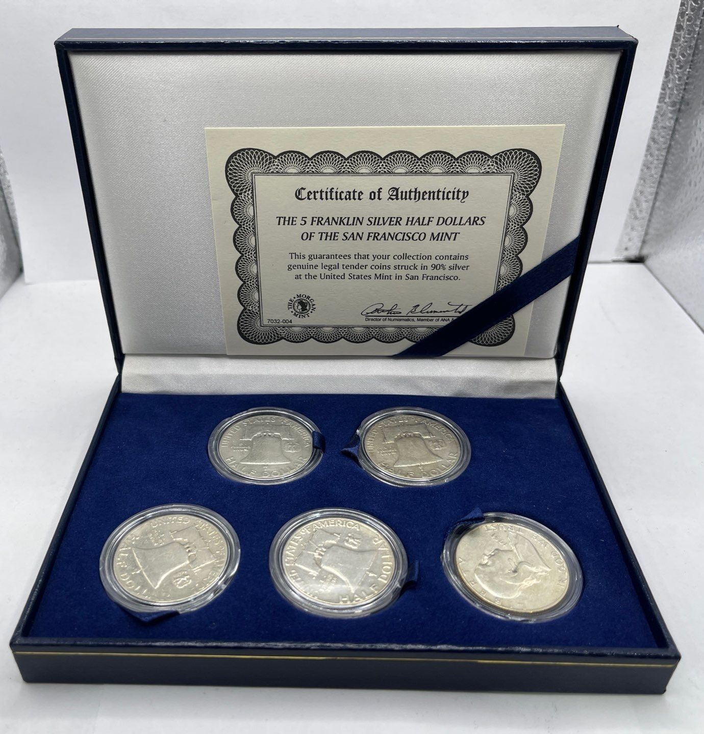 1949 5 Franklin Half Dollars, 12.5g Silver 90%