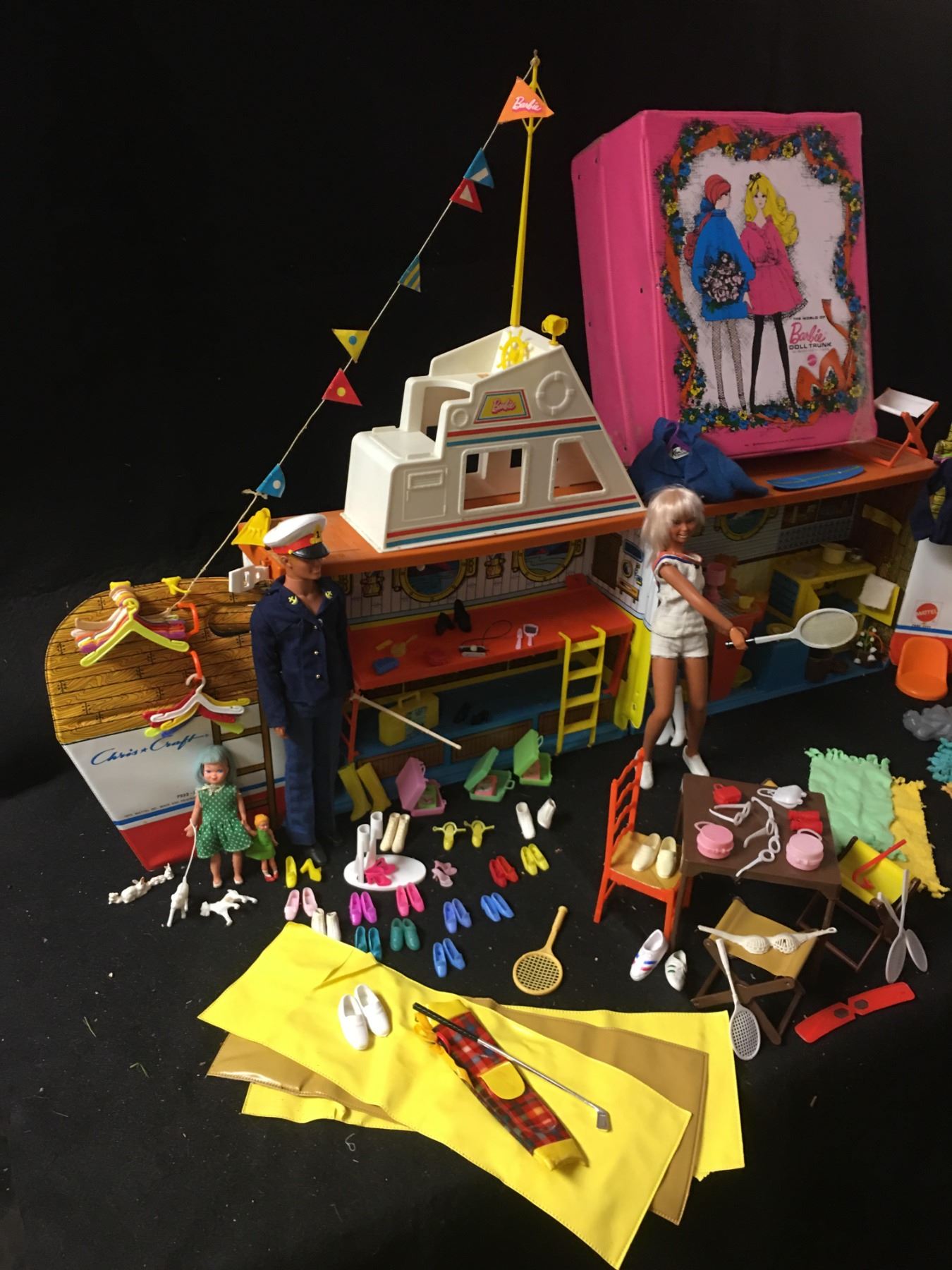 1960's Barbie Dream Boat, Barbie & Captain Ken Dolls, Shoes, Accessories & Barbie Trunk