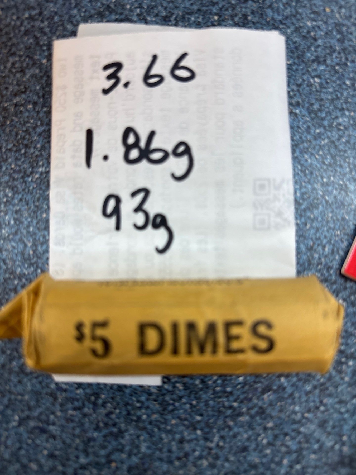 1966 5$ Roll of Canadian silver Dimes 93 g silver