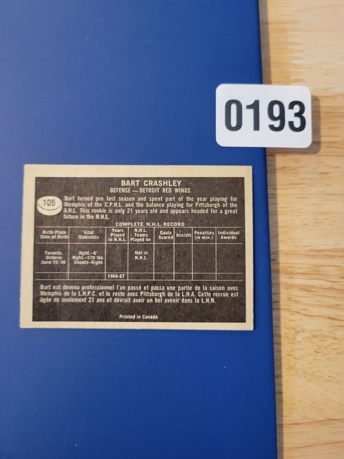 1966-67 Detroit Red Wings - Defense - Bart Crashley 105