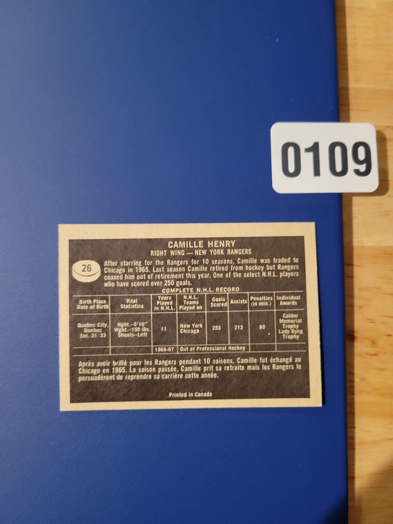 1966-67 New York Rangers - Right Wing - Camille Henry 26