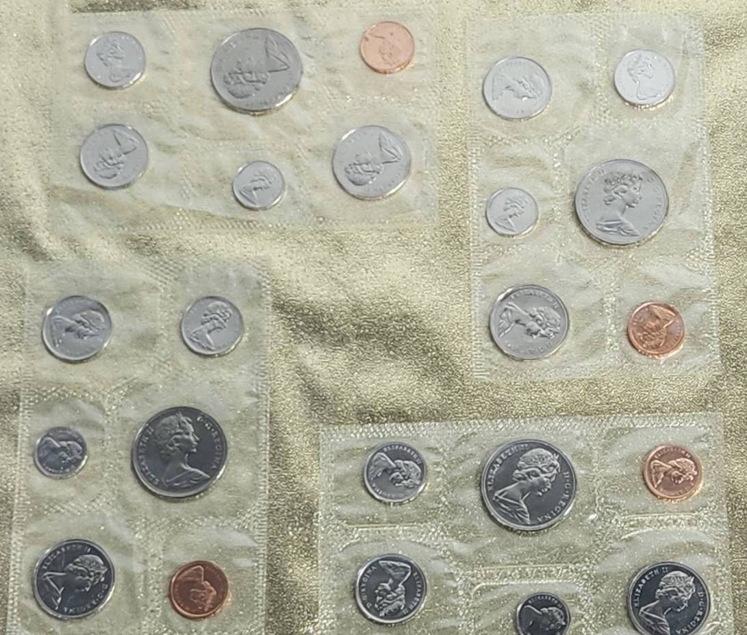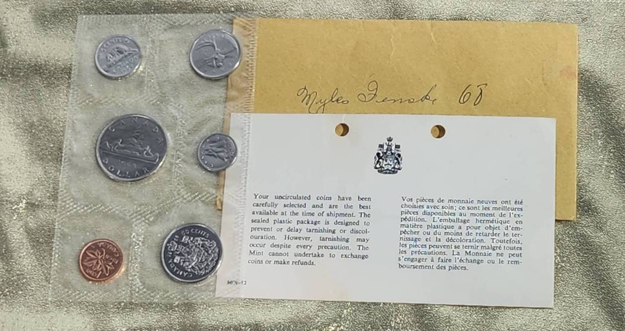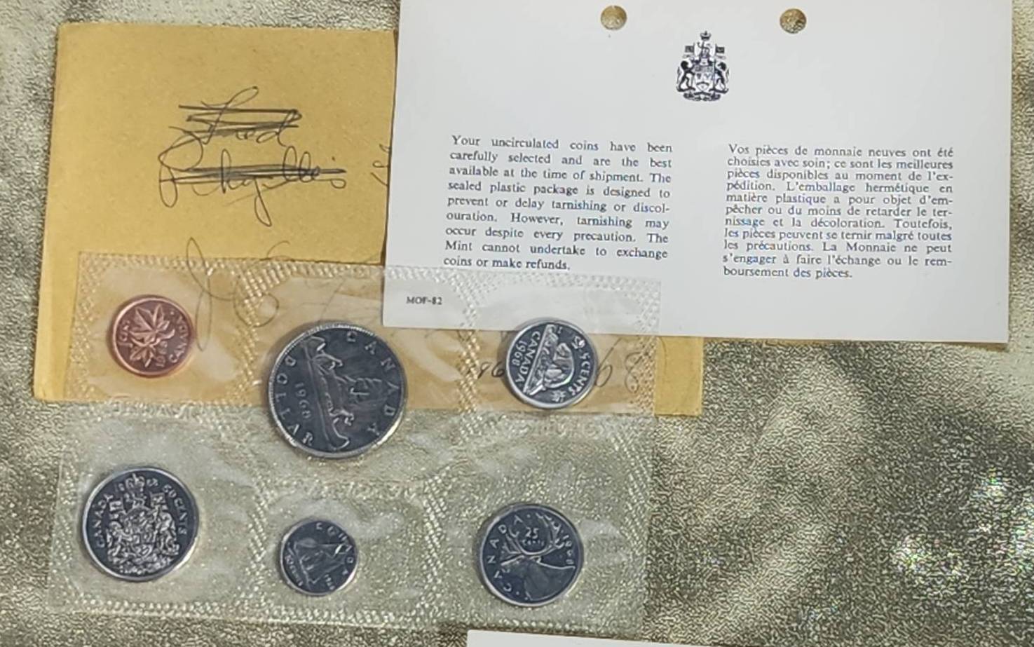 This lot includes three uncirculated coin sets from the Royal Canadian Mint: three from 1968 and one from 1969. | | | Each set is carefully preserved in its original sealed cellophane packaging, accompanied by original descriptive inserts and envelopes. | | | Coins include denominations ranging from 1 cent to $1, with unique designs showcasing Canada's heritage. Packaging dimensions measure approximately 6 x 4 inches per set, ensuring clear visibility of every coin's detail.
