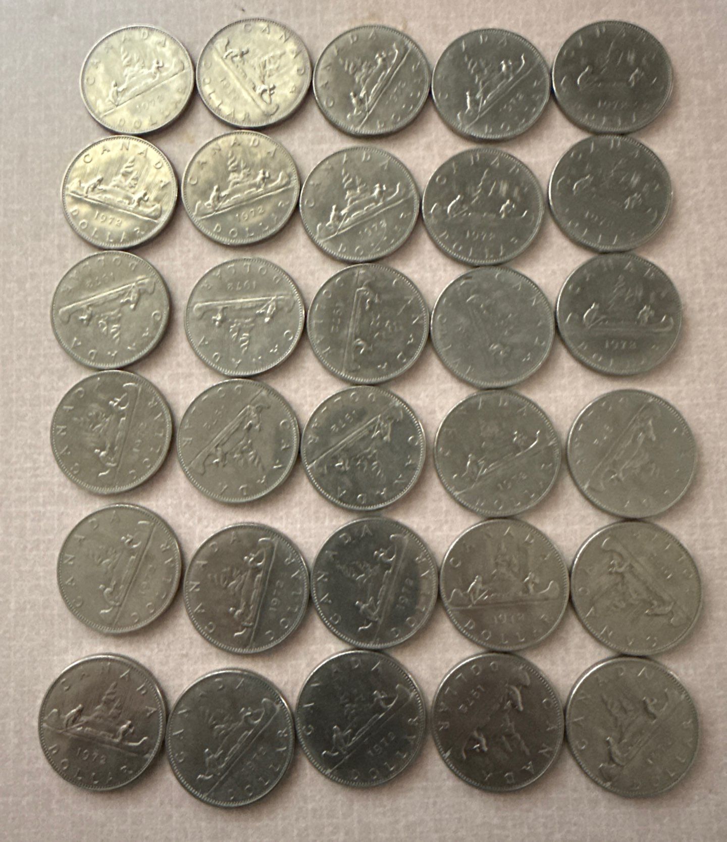 1972 Canadian $1 Dollar Coins - Voyageur Design