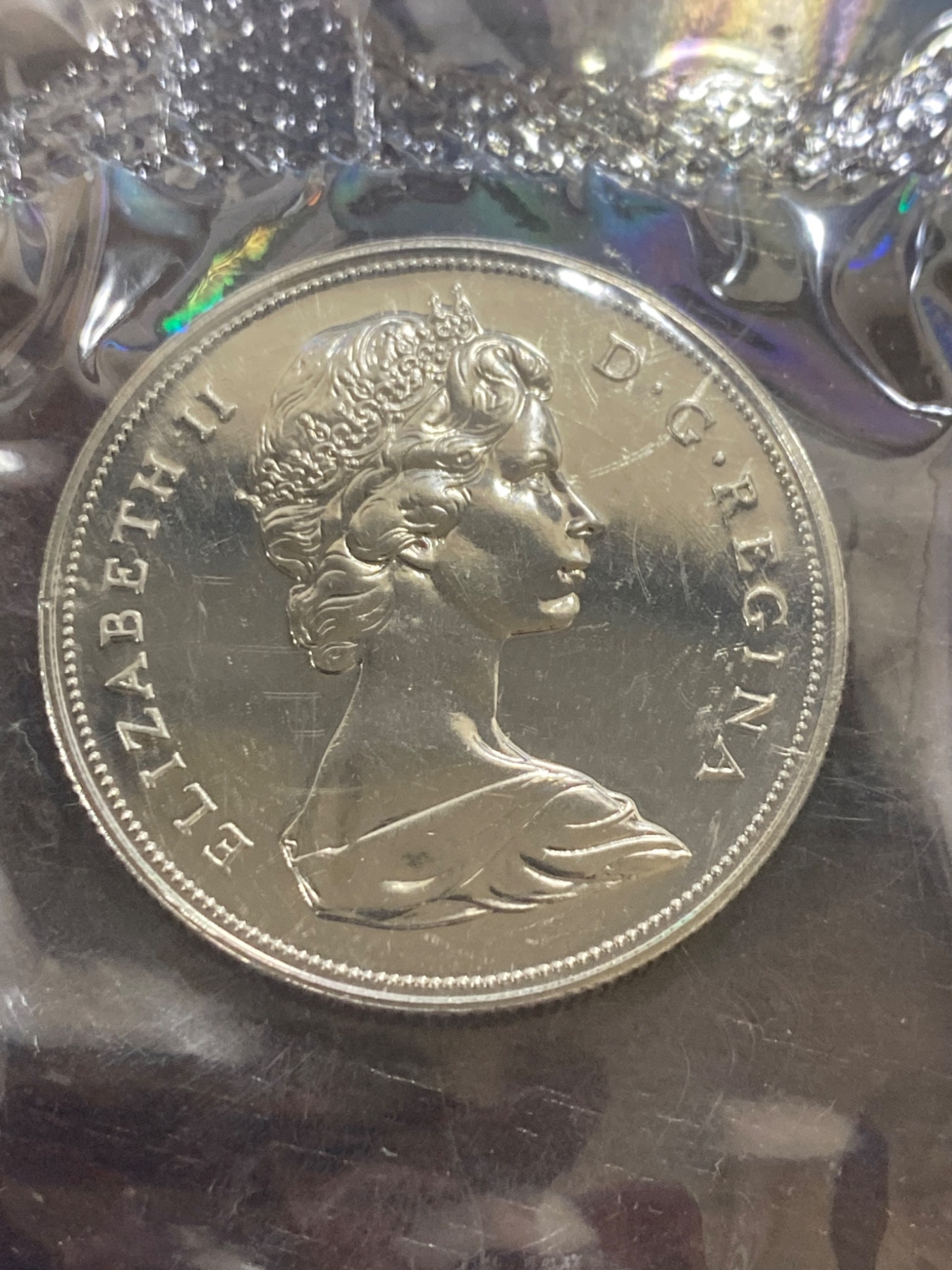 1972 Royal Canadian Mint uncirculated coin set, including six coins: 1 cent, 5 cents, 10 cents, 25 cents, 50 cents, and 1 dollar. All coins remain sealed in their original plastic case with accompanying printed card. Original envelope and packaging included, showcasing the Mint building artwork. Coins exhibit bright mint luster and are preserved in uncirculated condition.