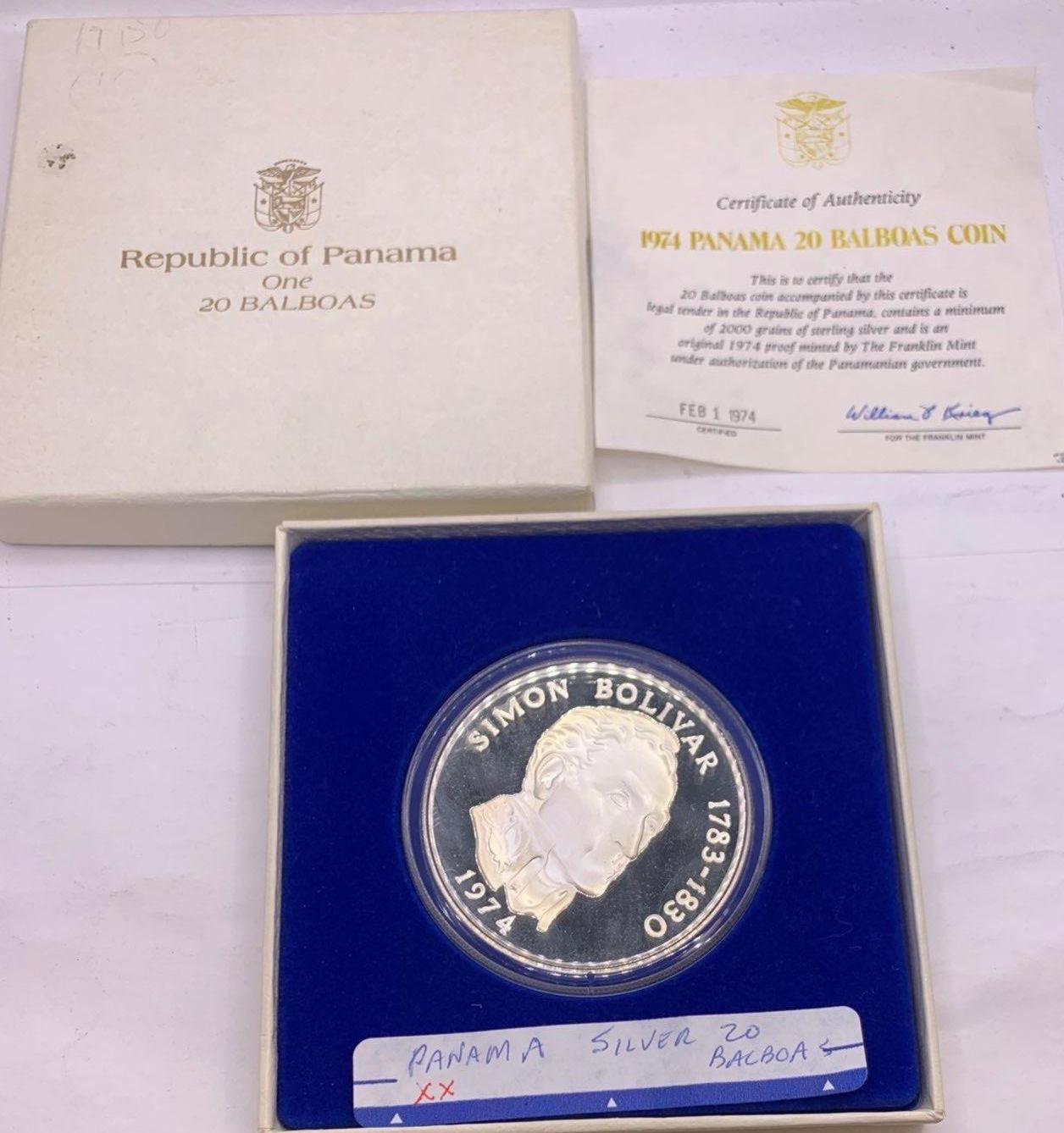 1974 Panama 20 Balboas Coin w/ CoA, (Panama Silver? Has a Smell) 130.2 Grams