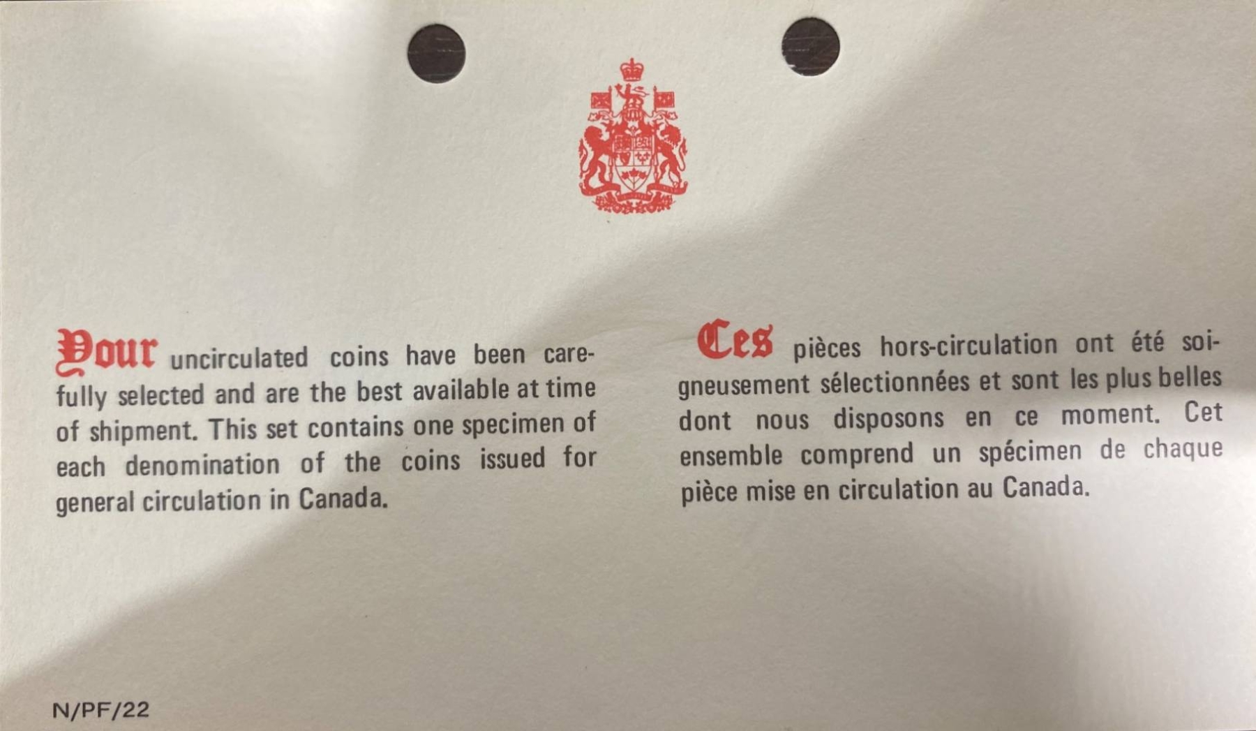 1975 Canadian uncirculated coin set presented in its original sealed packaging and includes coins from that year's minting: 1 cent, 5 cents, 10 cents, 25 cents, 50 cents, and 1 dollar. Each coin features detailed imagery, including Queen Elizabeth II's profile on the obverse and various Canadian motifs on the reverse. A collector's information card is included.