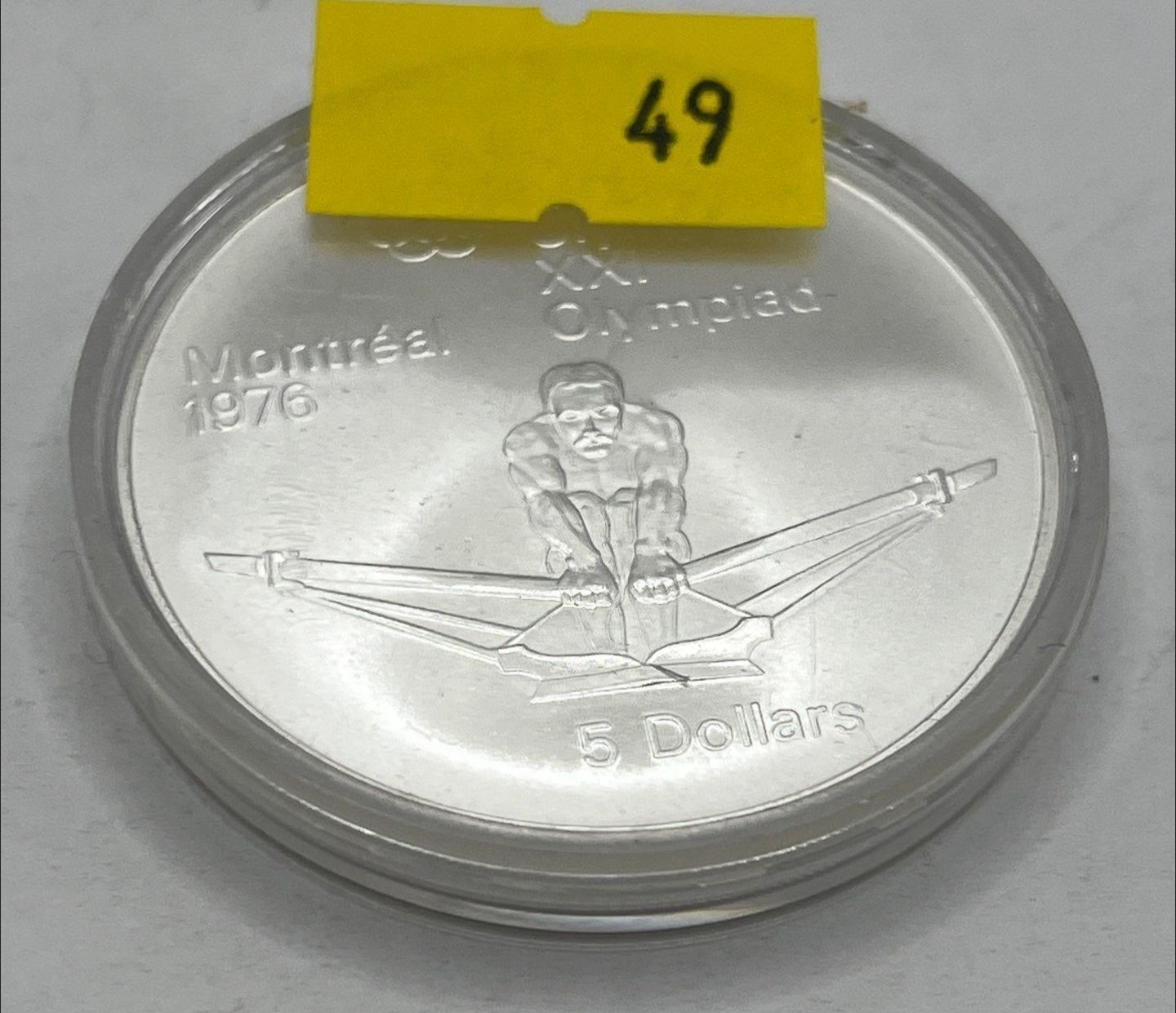 1976 Montreal Olympic $5 Proof Rowing Coin 24.3g 92.5% Silver