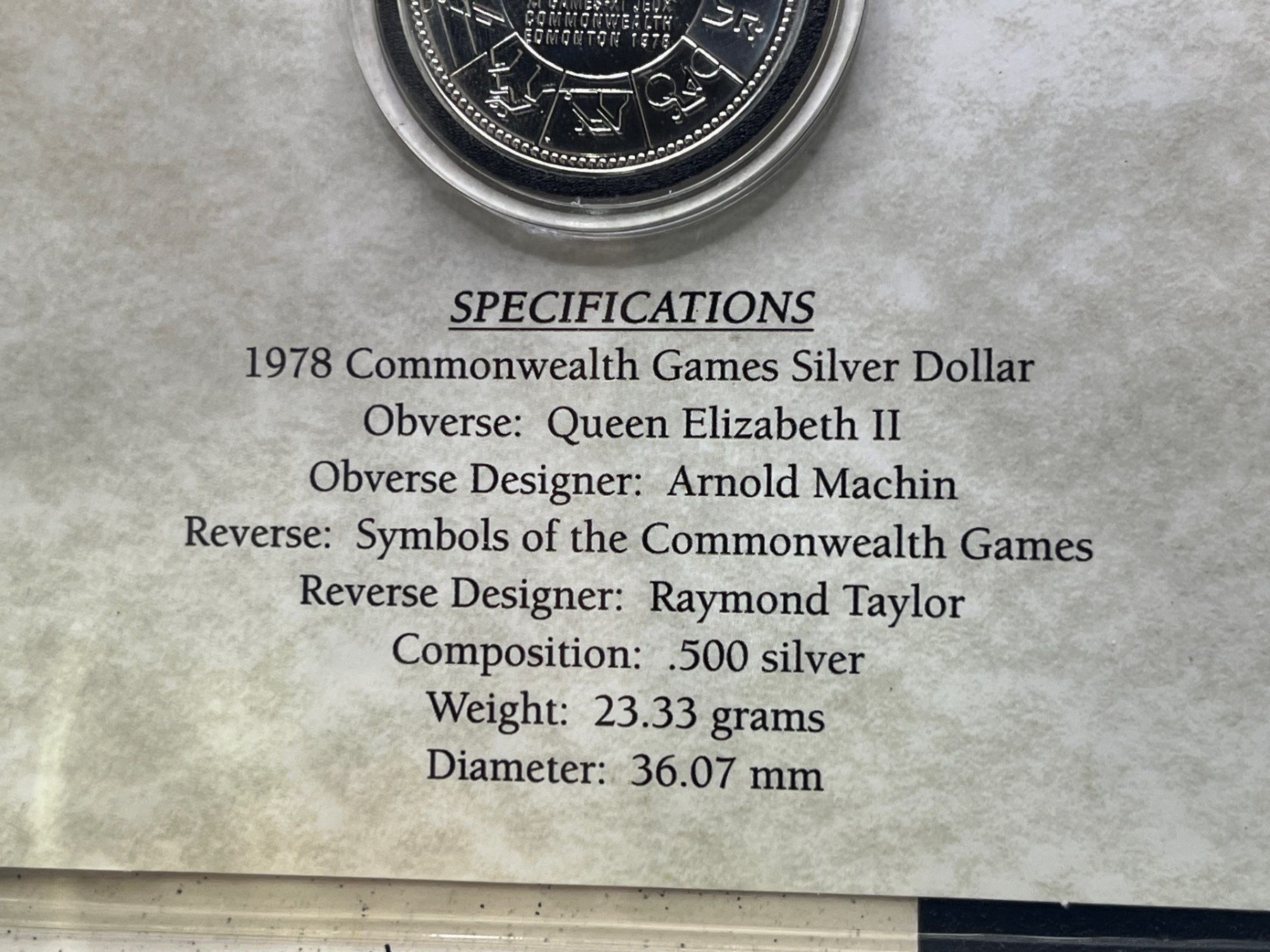 1978 Commonwealth Games Silver Dollar .500 Silver 23.33G