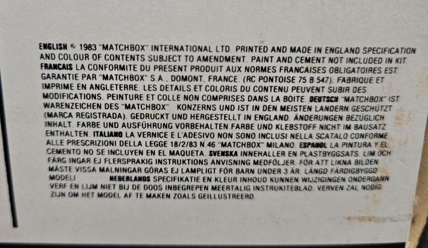 1983 Matchbox 1:72 Model Kit Never Assembled In Original Box
