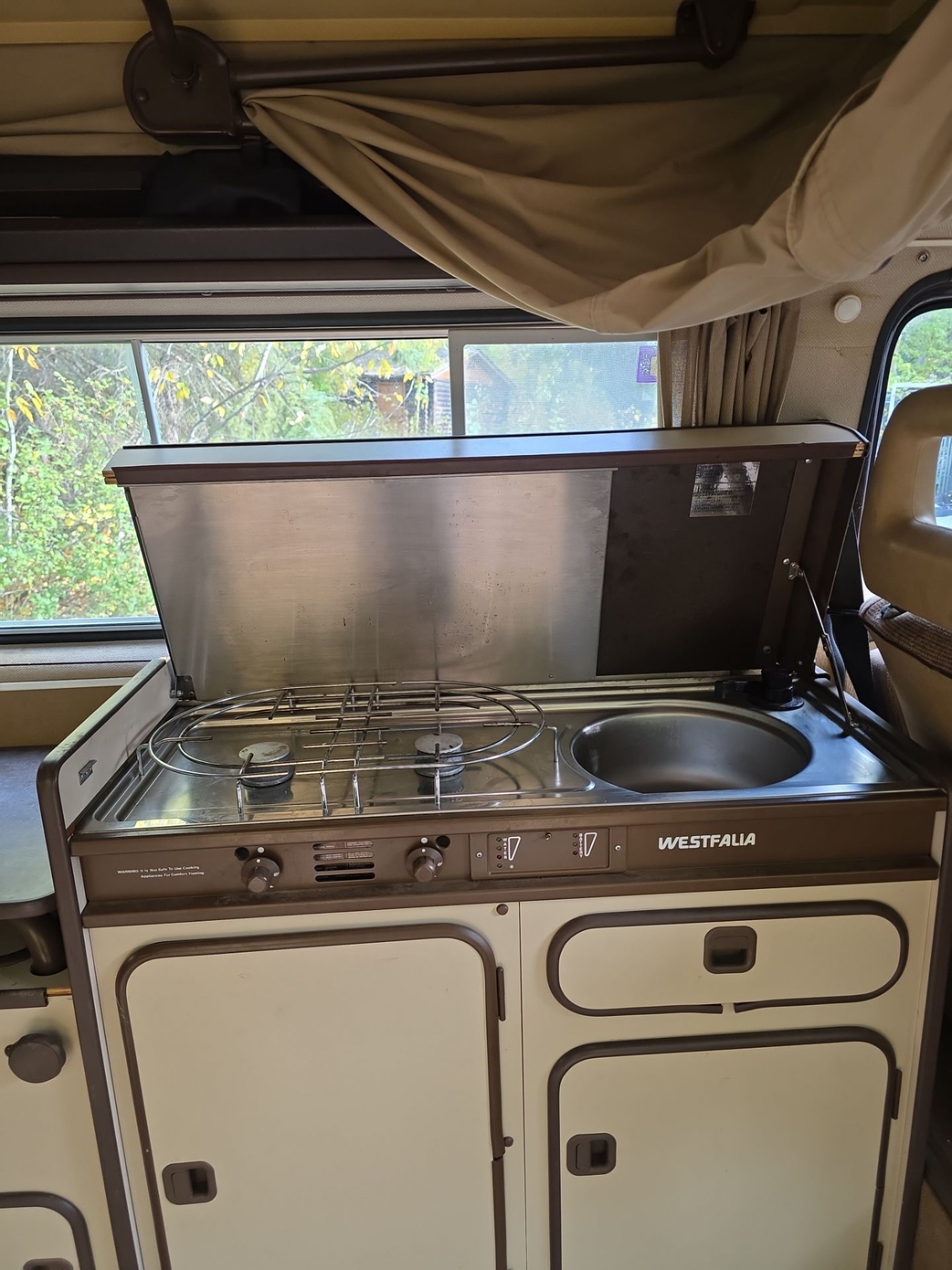 Iconic Westfalia pop-top roof for standing room and sleeping space