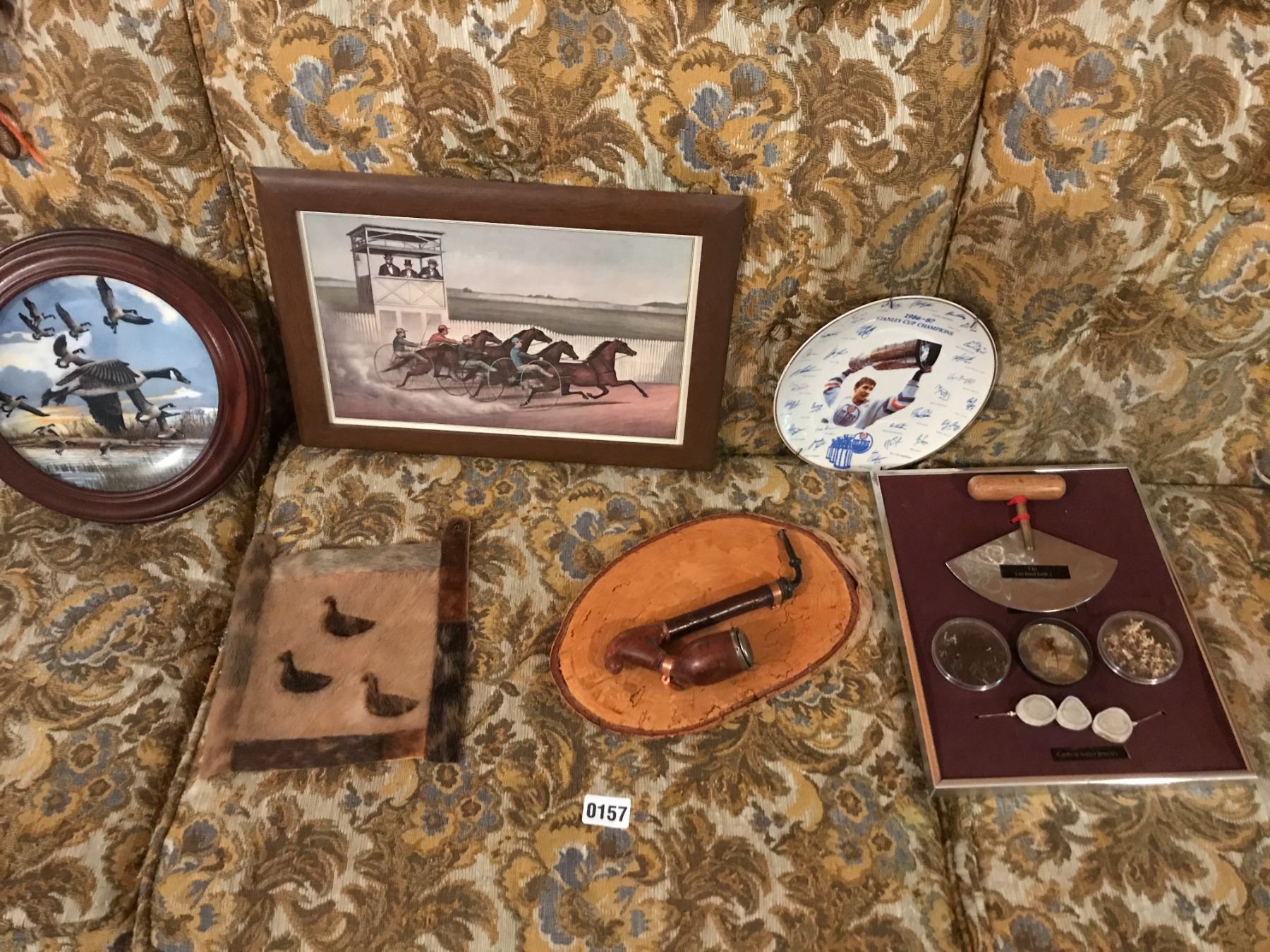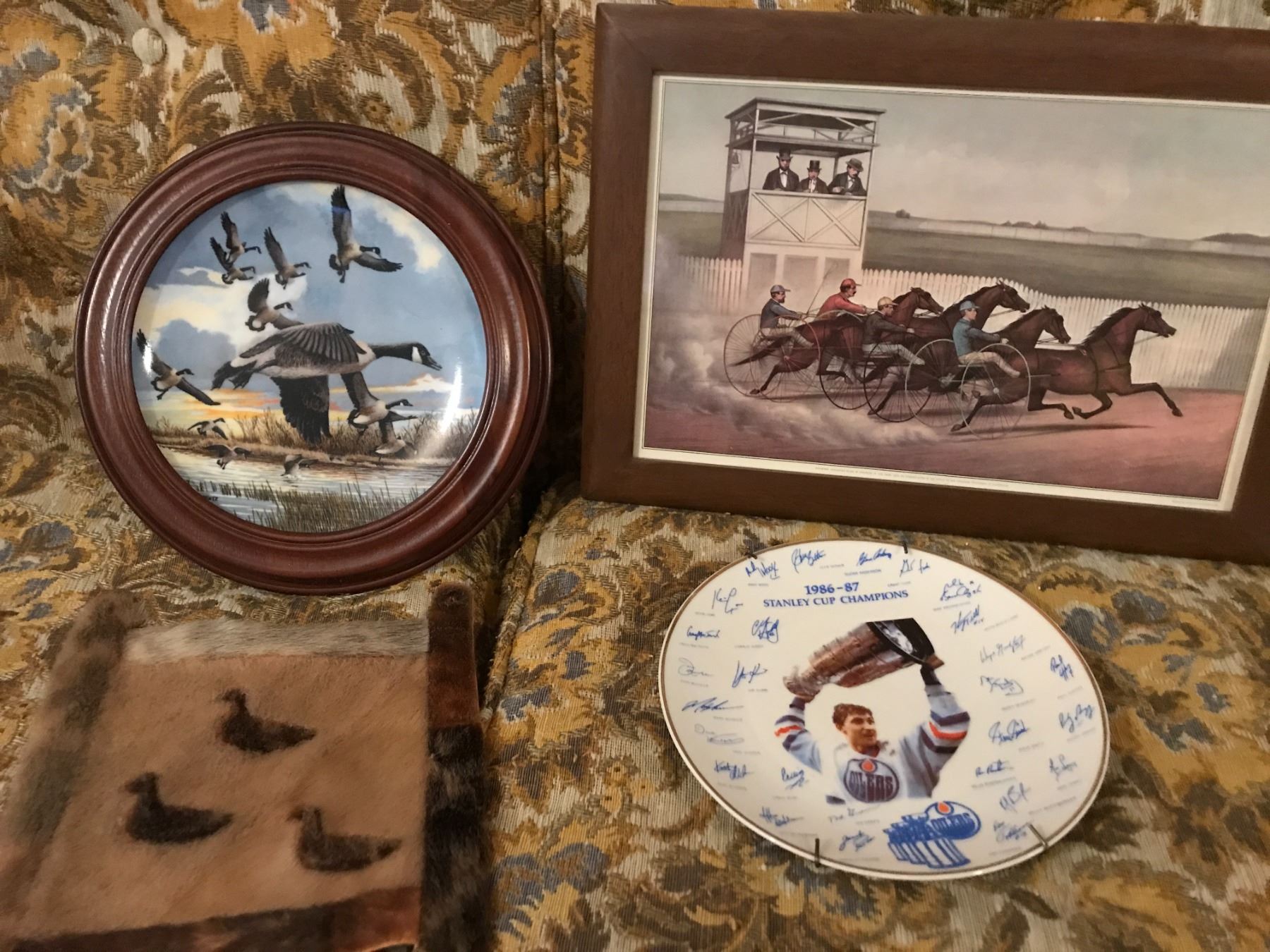 1987-87 Stanley Cup Plate, Fur Wall Hanging, Antique Pipe, Caribou Antler Jewellery & Inuit Knife Etc