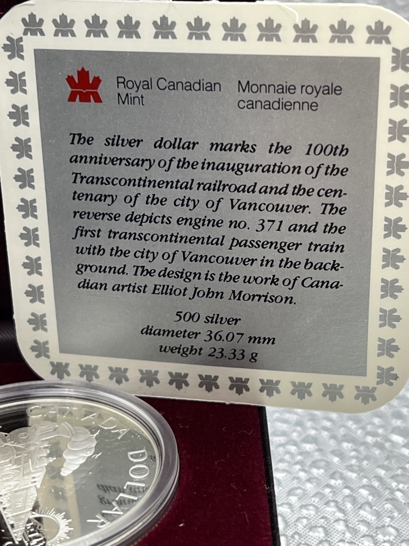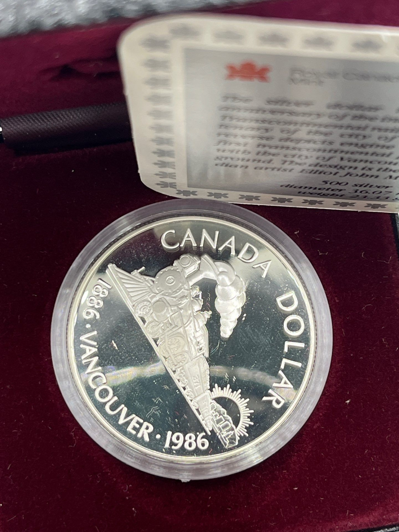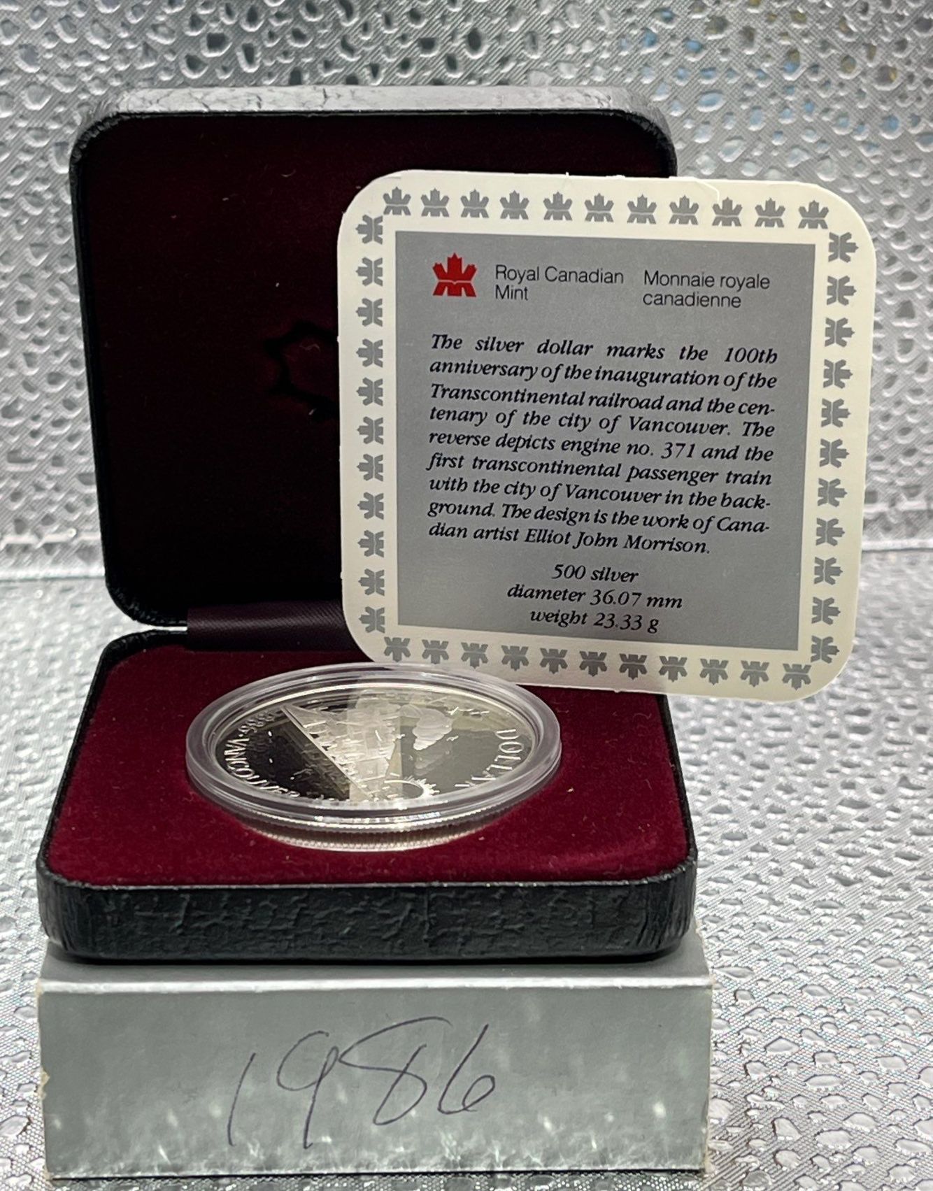 1986 Canadian 100th Anniversary of the Transcontinental Railway Silver Dollar 23.3g 50% Silver