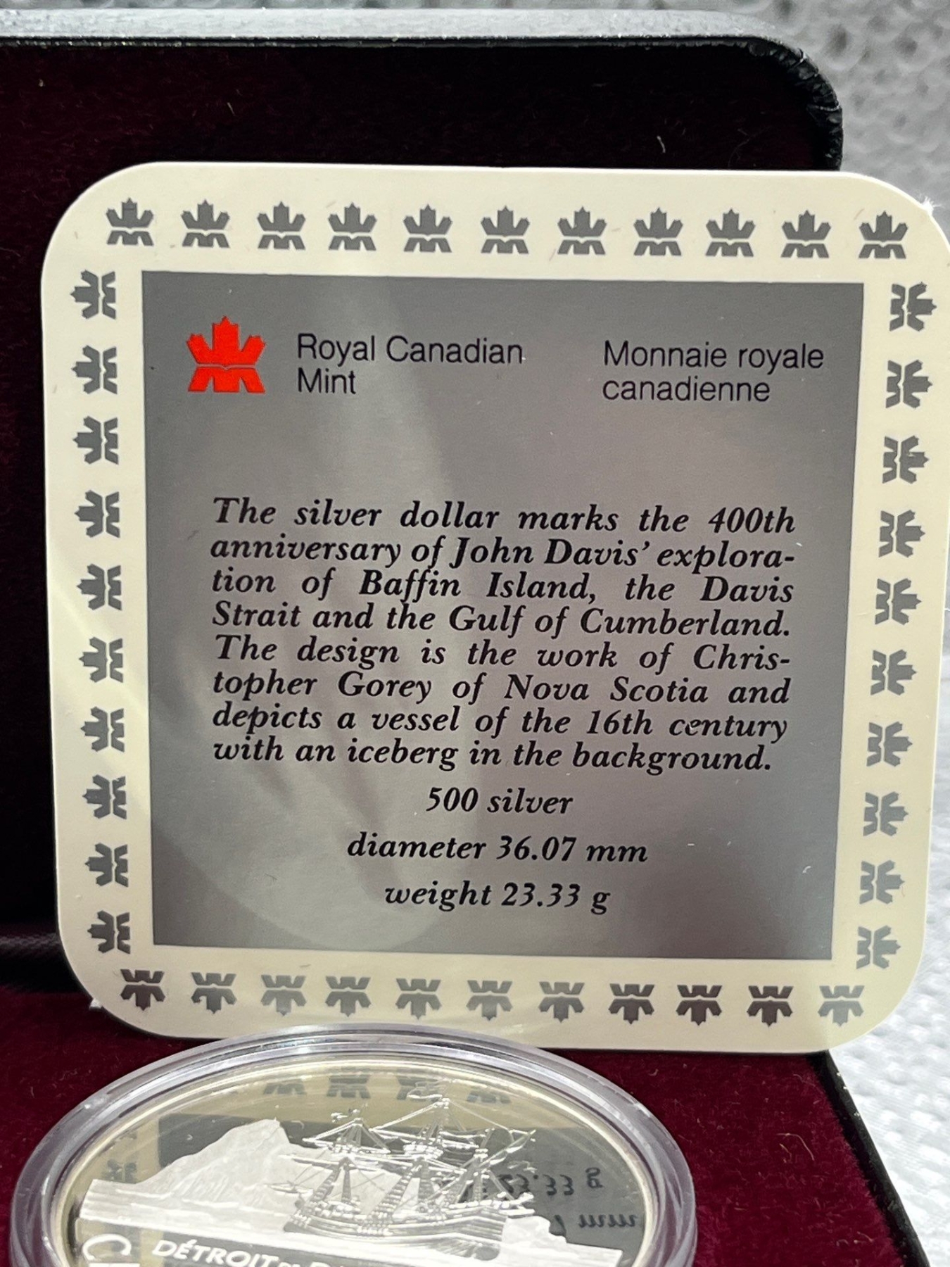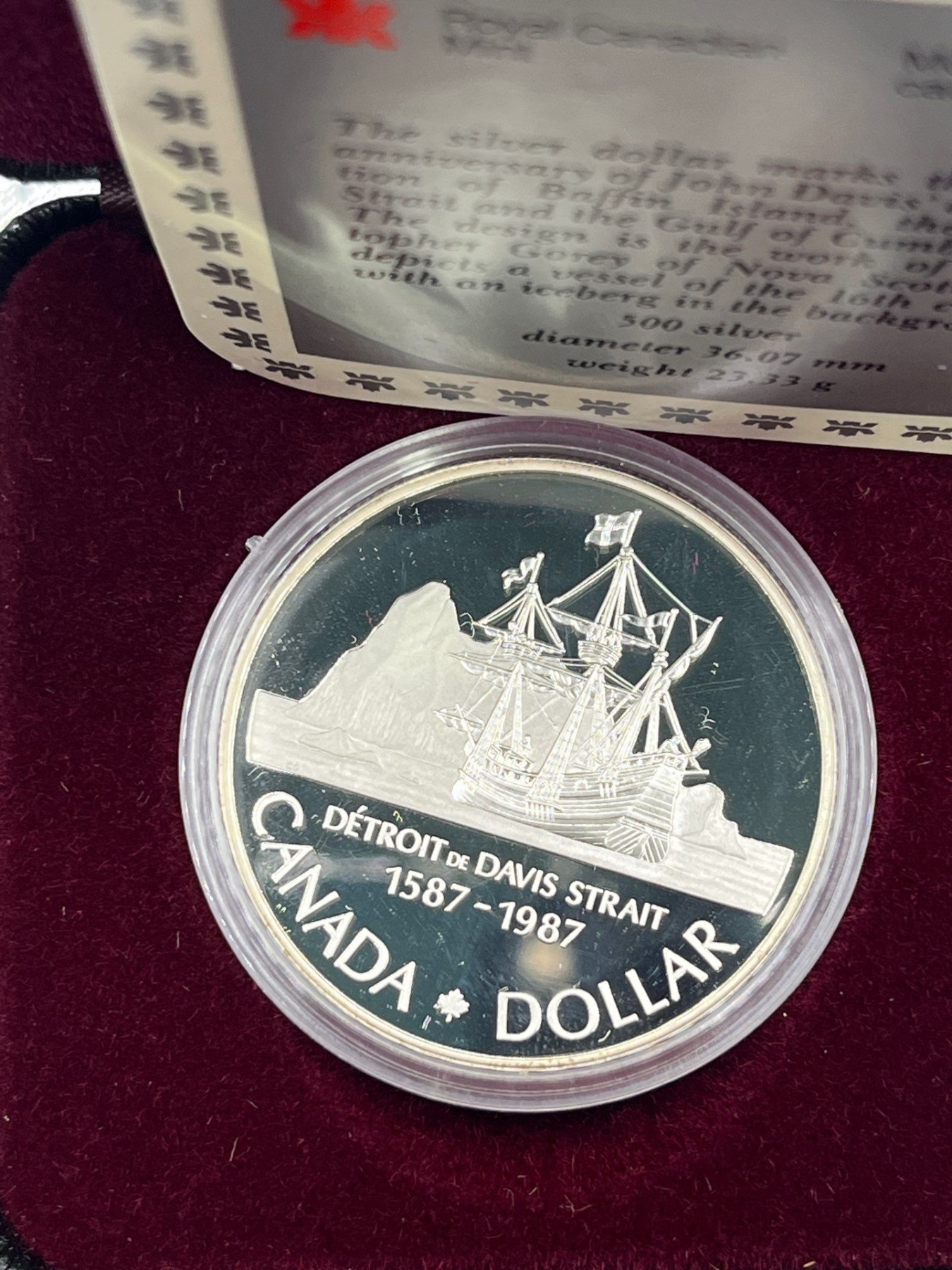1987 Canadian 400th Anniversary of the Discovery of Davis Strait Silver Dollar 23.3g 50% Silver