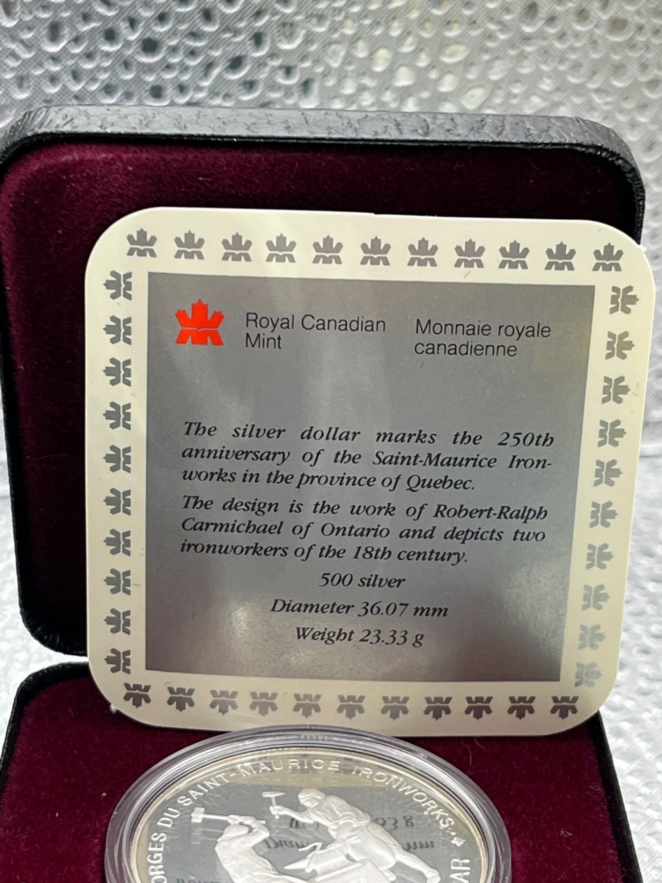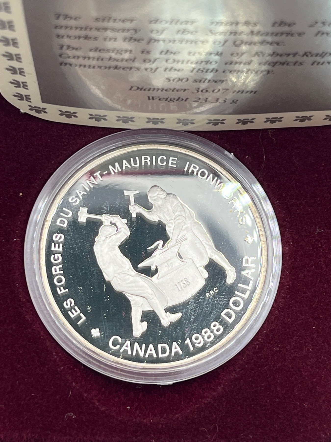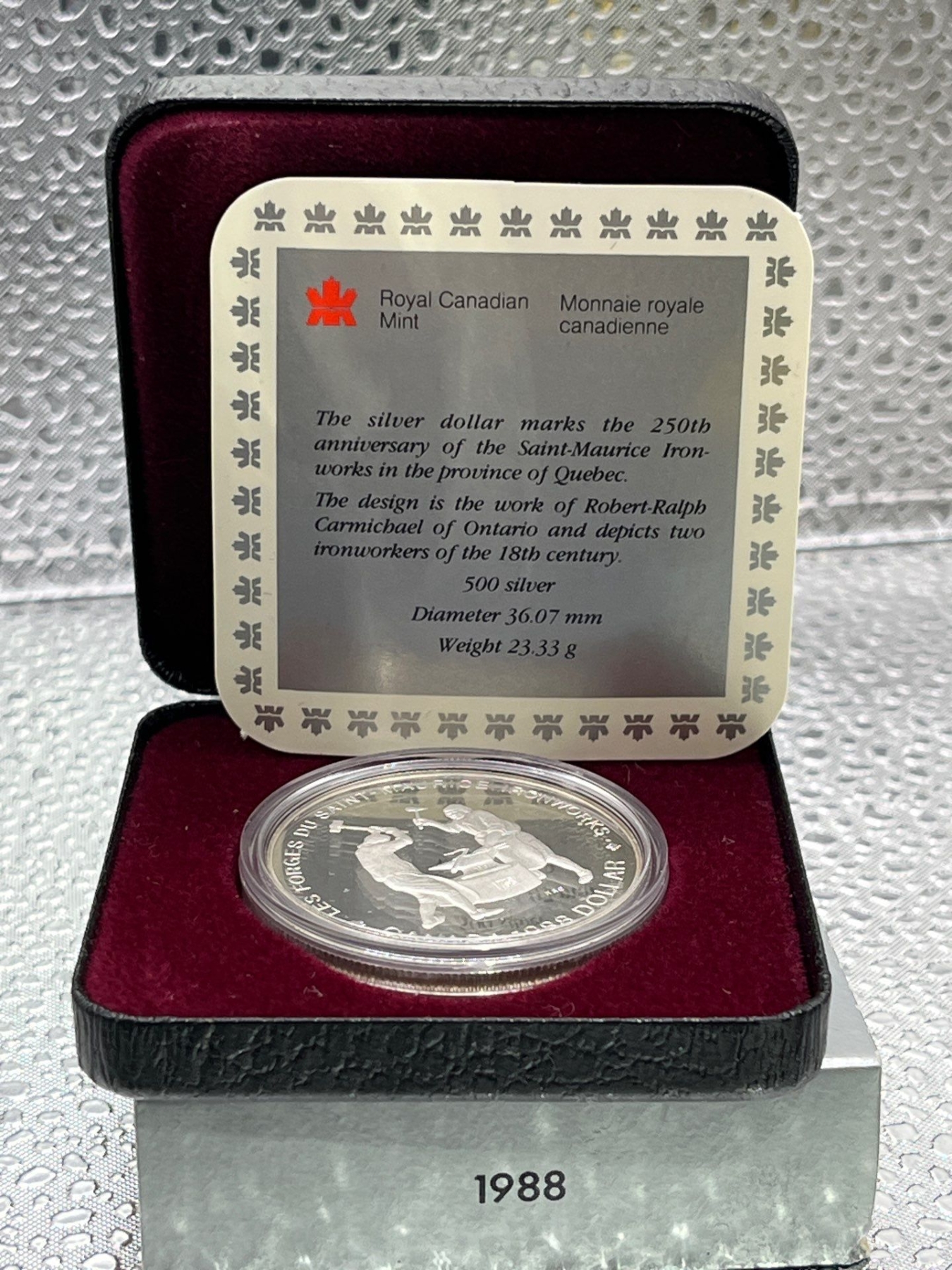 1988 Canadian 250th Anniversary of the Saint-Maurice Ironworks Silver Dollar 23.3g 50% Silver
