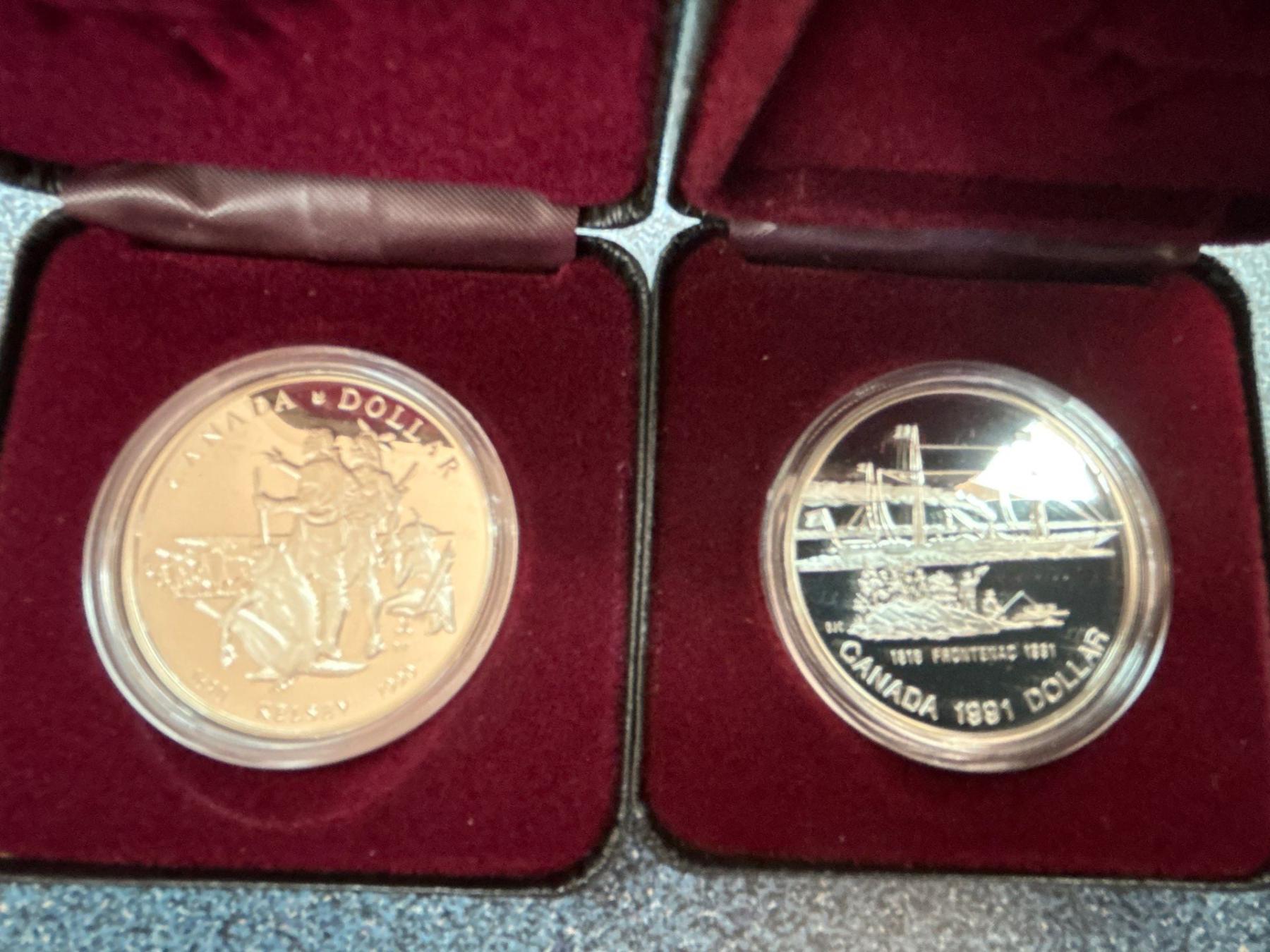 1990 and 1991 silver proof dollars Henry Kelsey Tricentennial , The Frontenac, 175th Anniversary 46.66 g silver