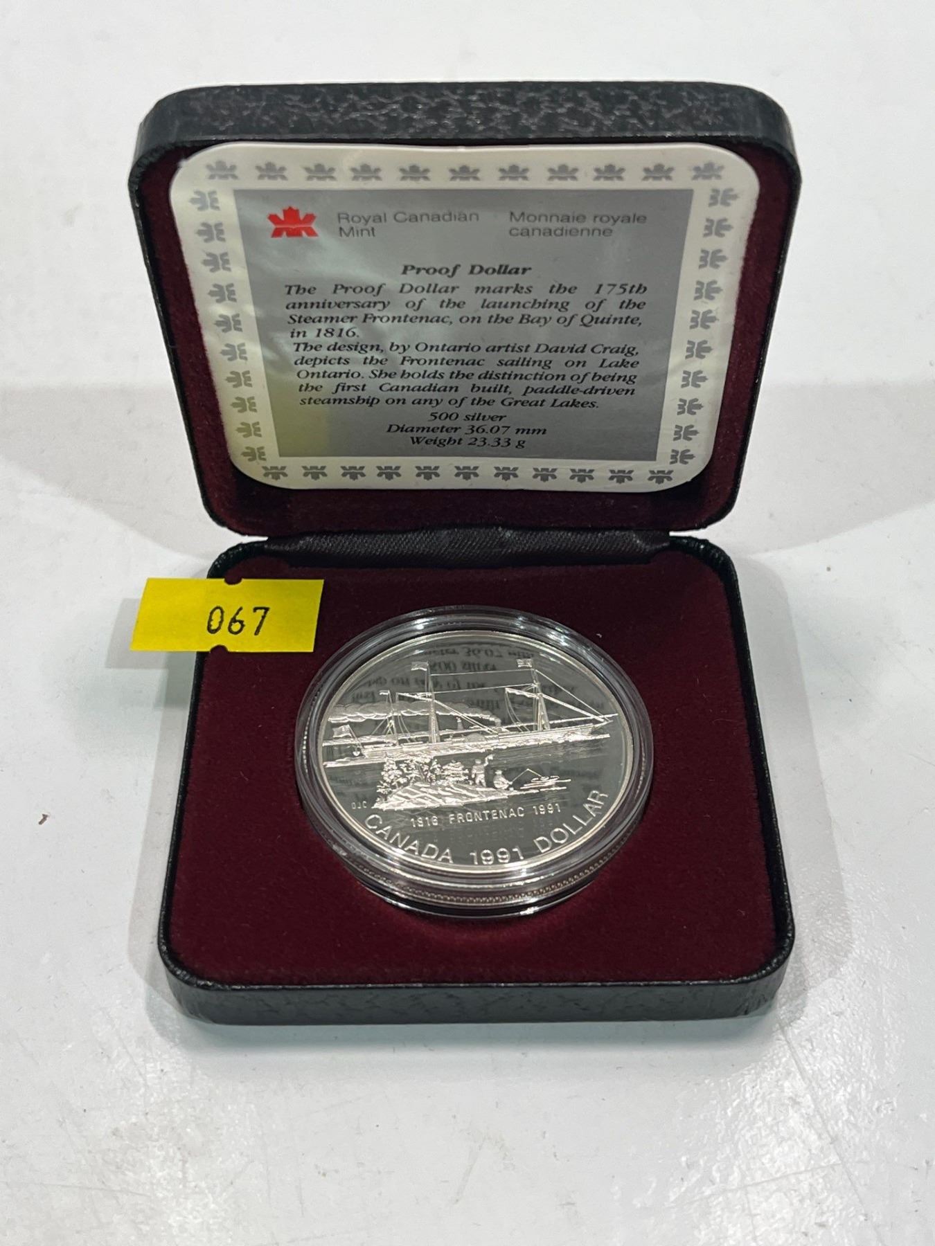 1991 175th Anniversary Of The Frontenac Proof Silver Dollar Coin 50% Silver
