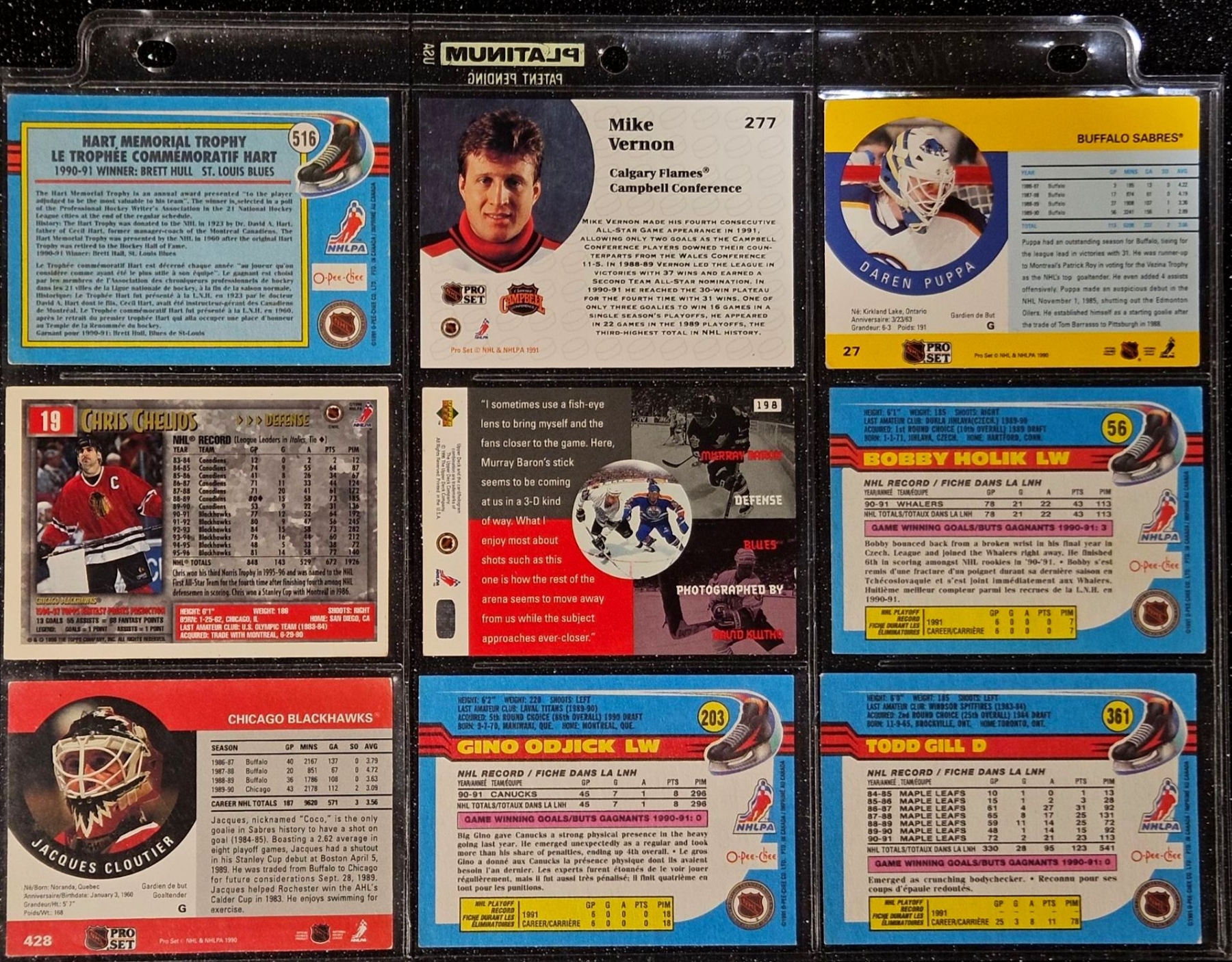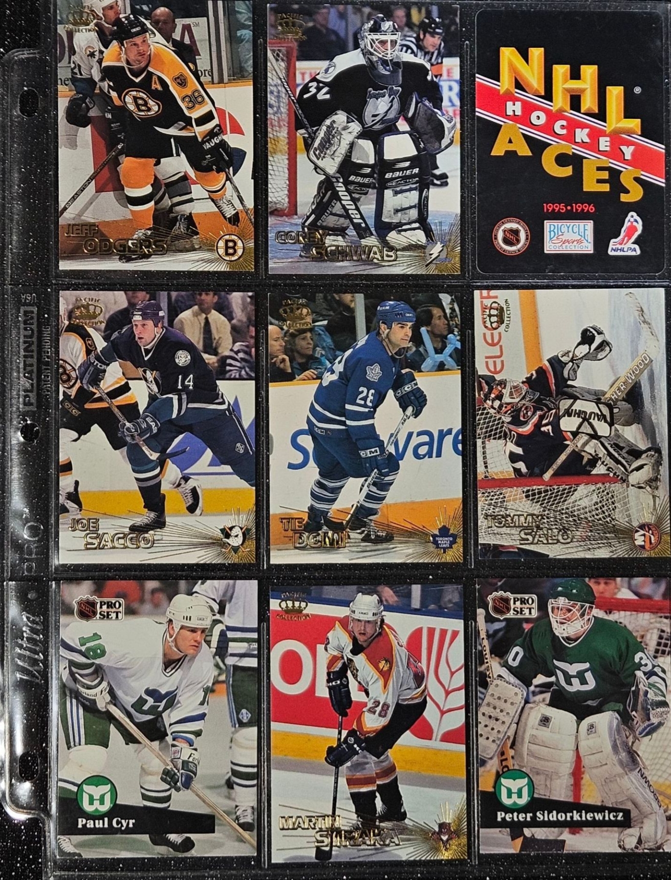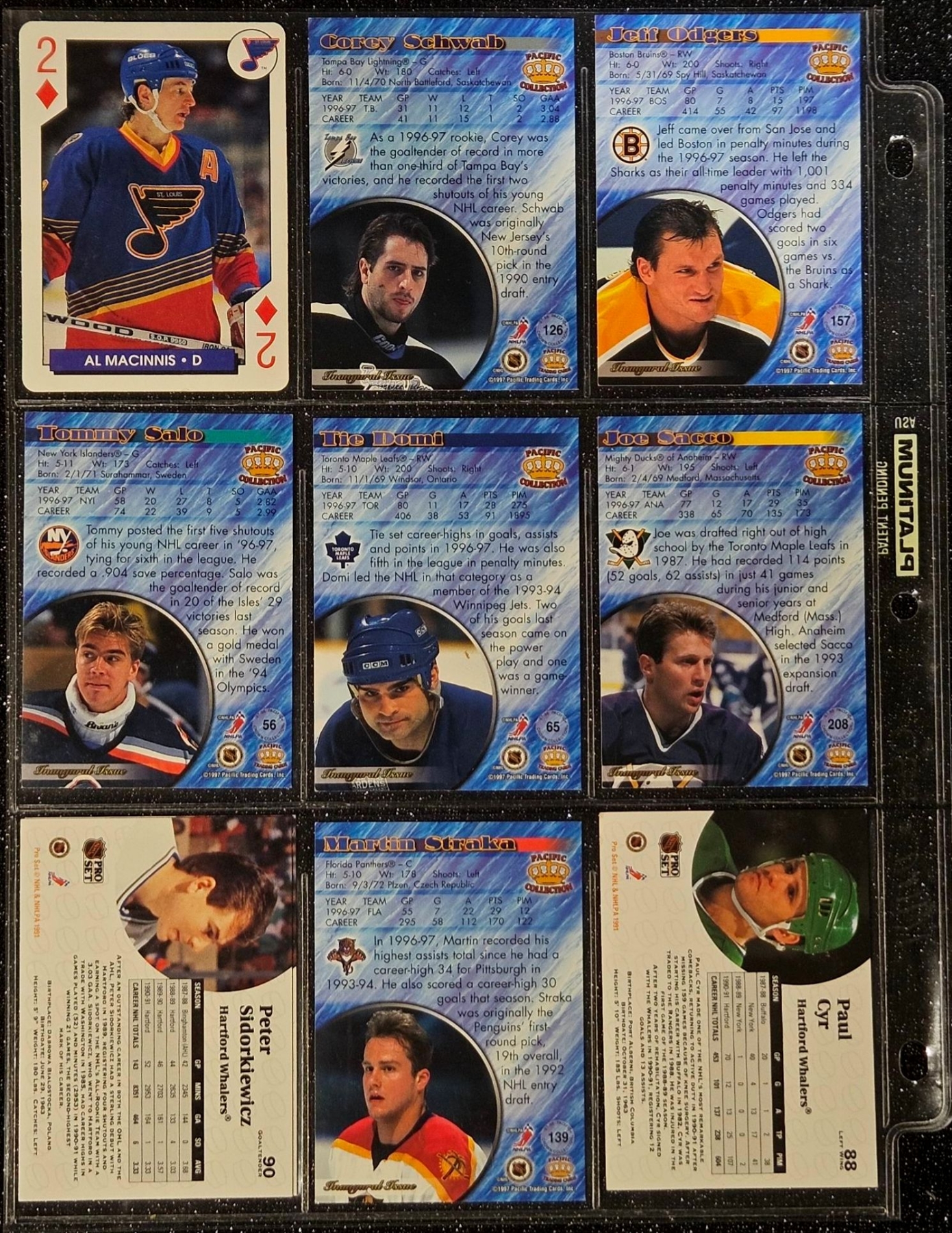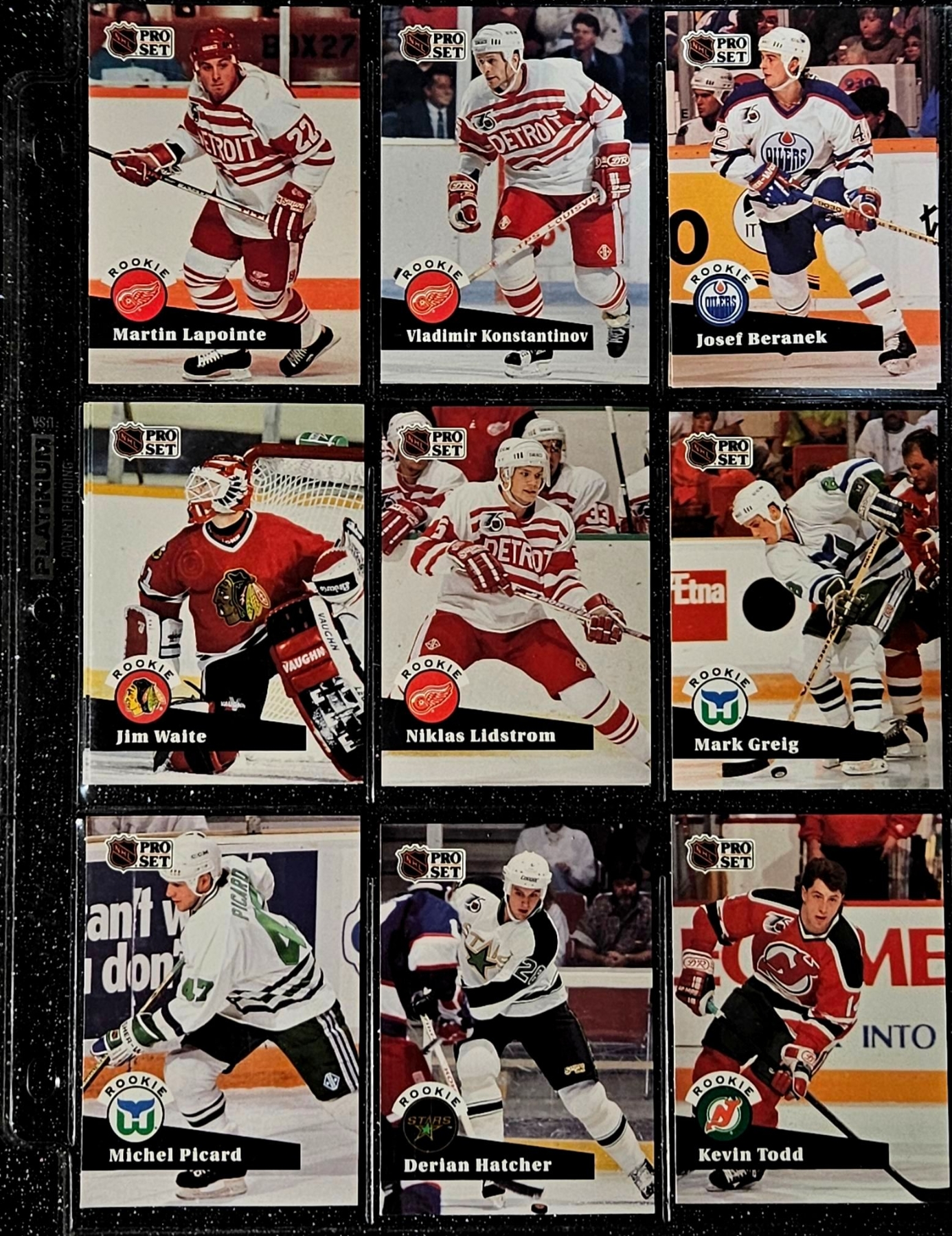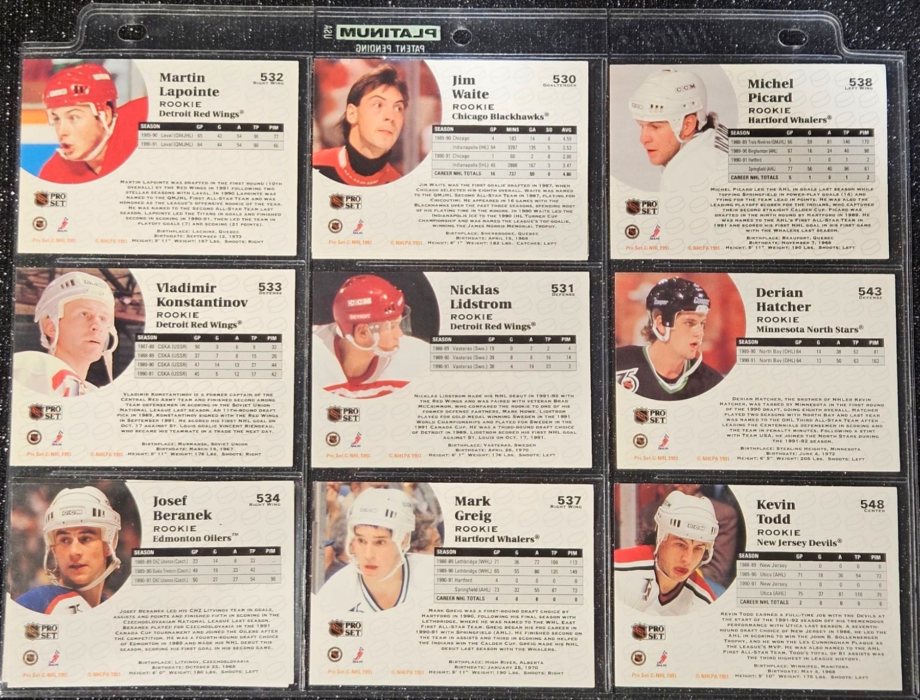 This Collection Includes Hockey Hall of Famer, Nicklas Lidstrom, Derian Hatcher, Vladimir Konstantinov, and Others. In a Protective Plastic Binder Sheet( 10 sheets total)