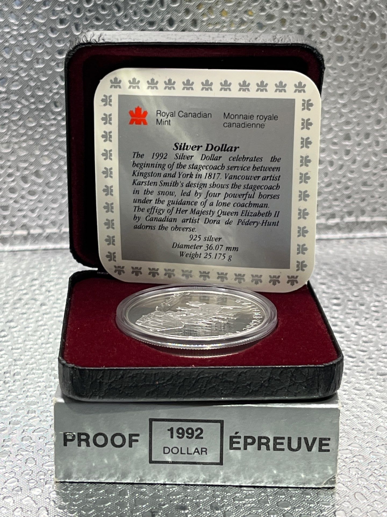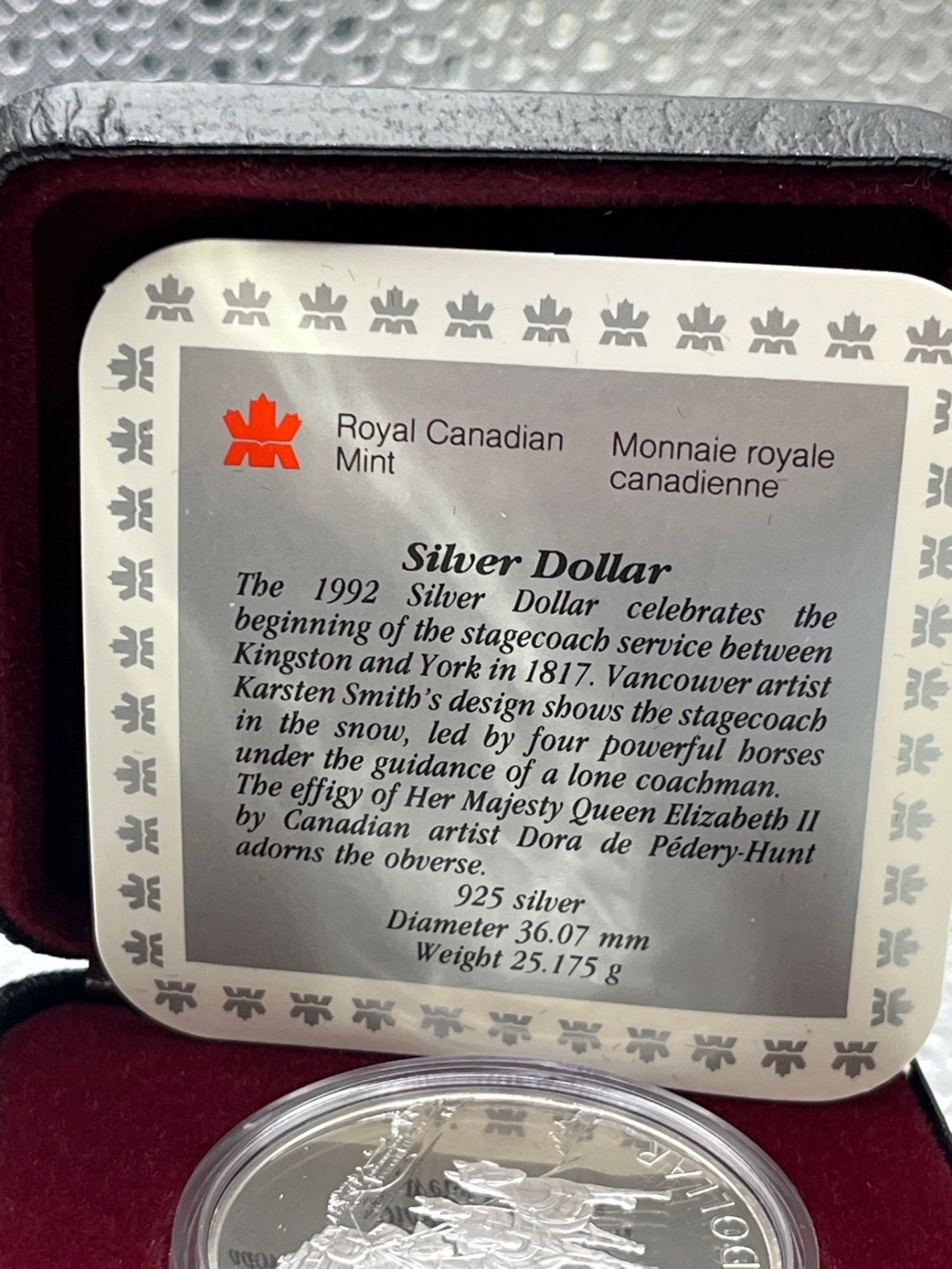 1992 Canadian Kingston to York Stagecoach Silver Dollar 25.175g 92.5% Silver