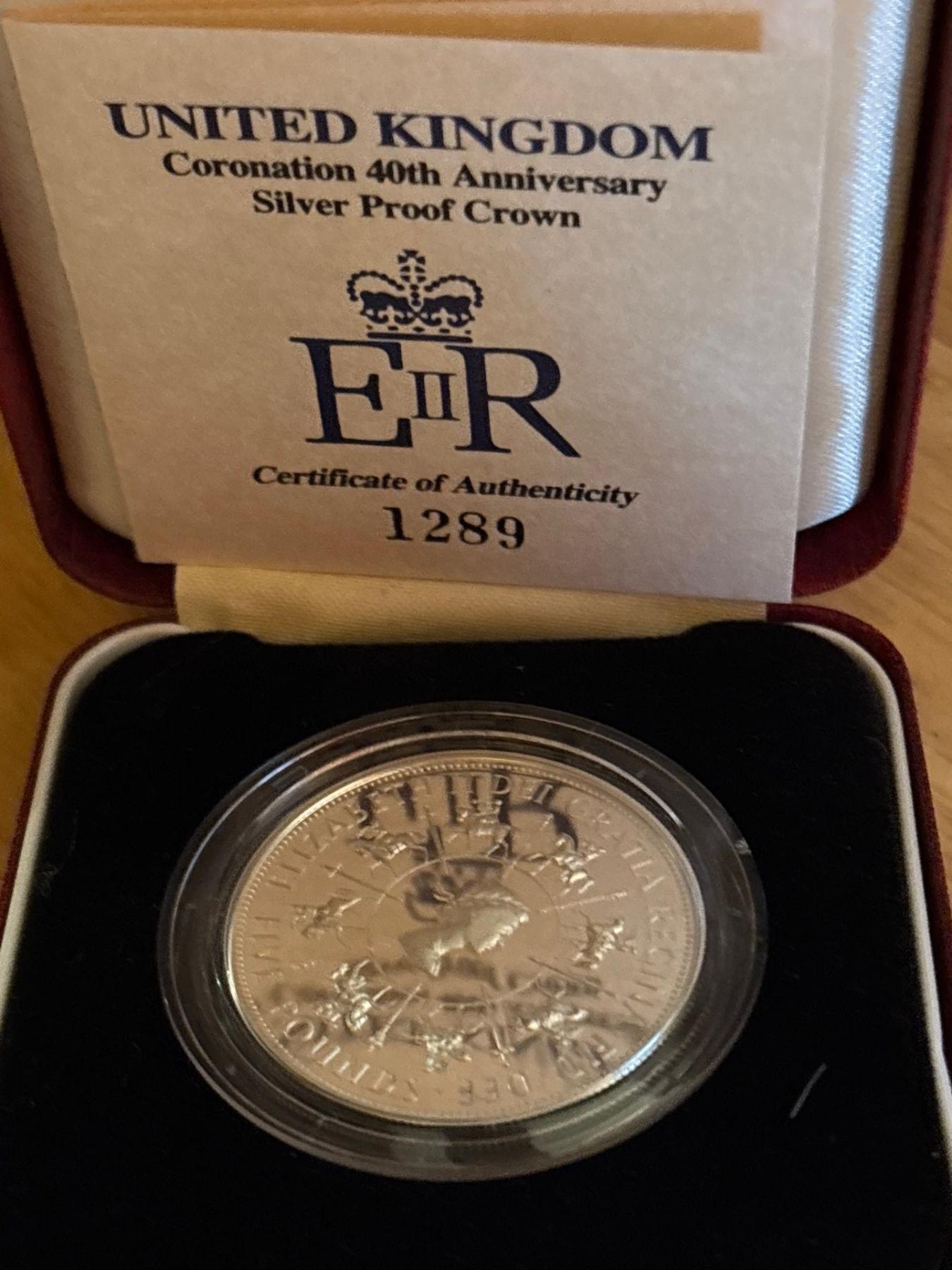 1993 Coronation 40th Anniversary Five Pound Crown Silver Proof Coin