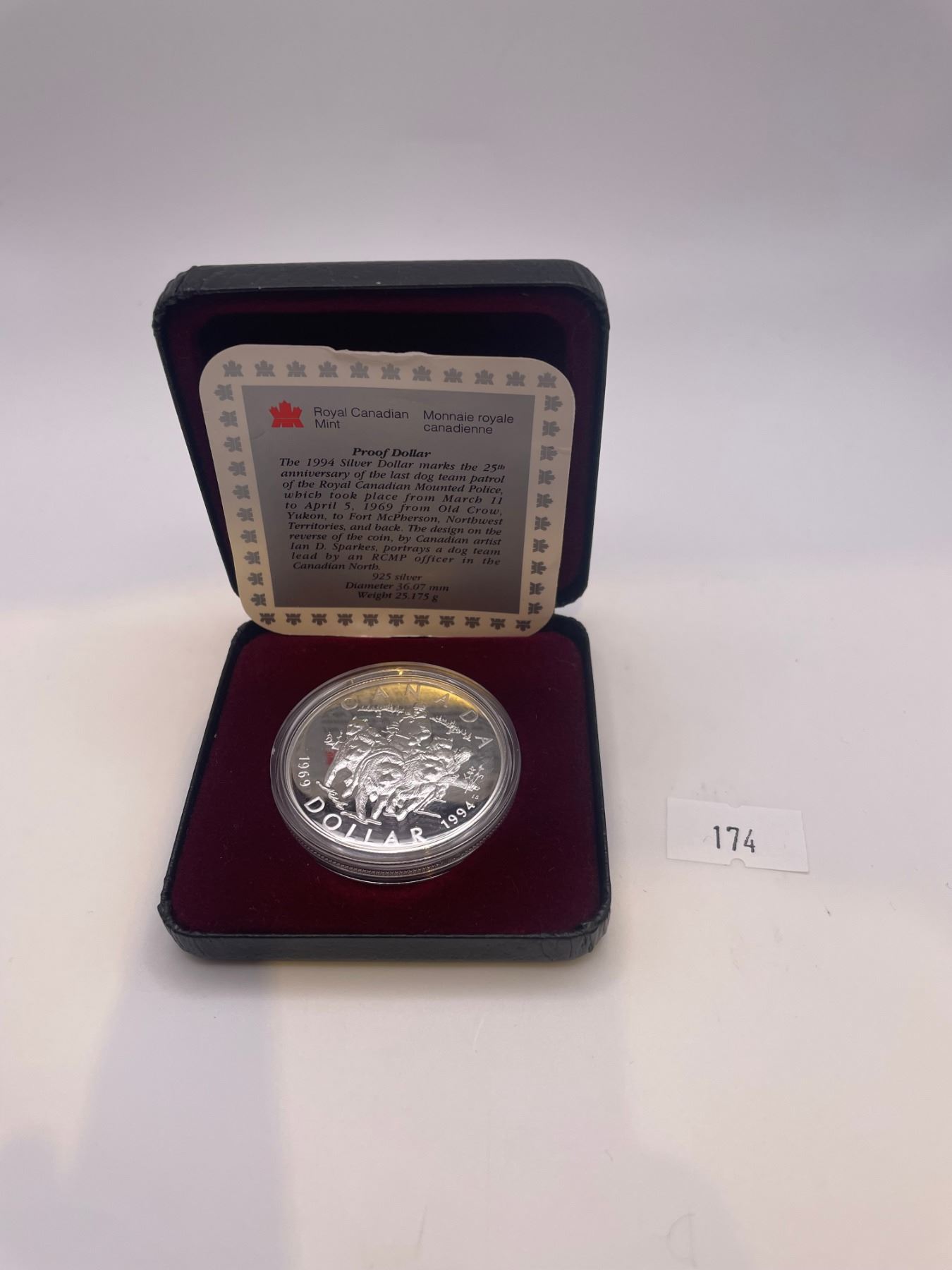 994 Canada RCMP Dog Team Patrol Brilliant Uncirculated Sterling Silver Dollar