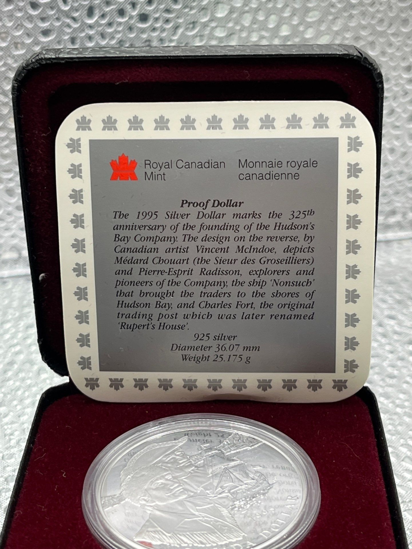 1995 Canadian 325th Anniversary of the Hudson's Bay Company Silver Dollar 25.175g 92.5% Silver